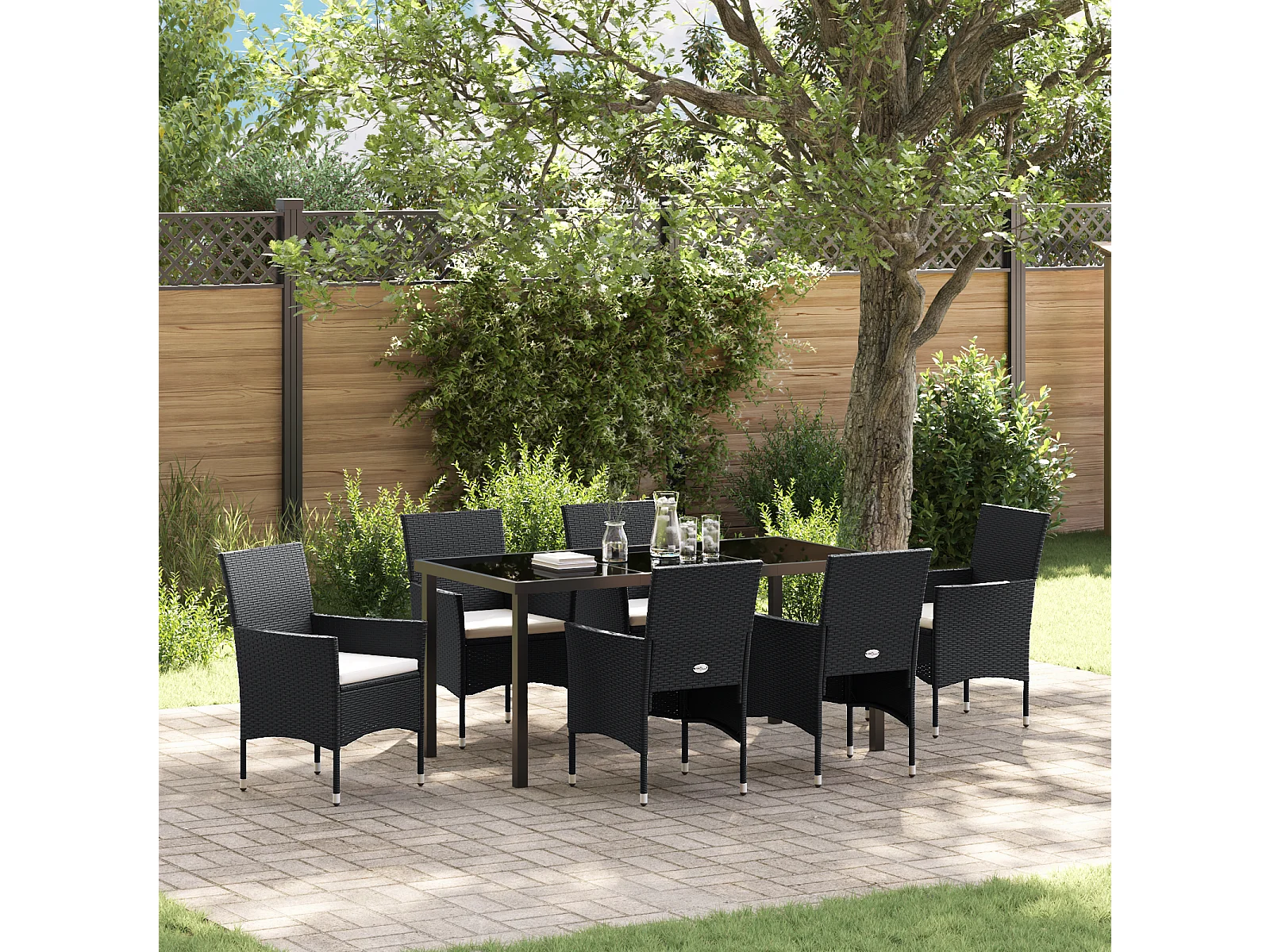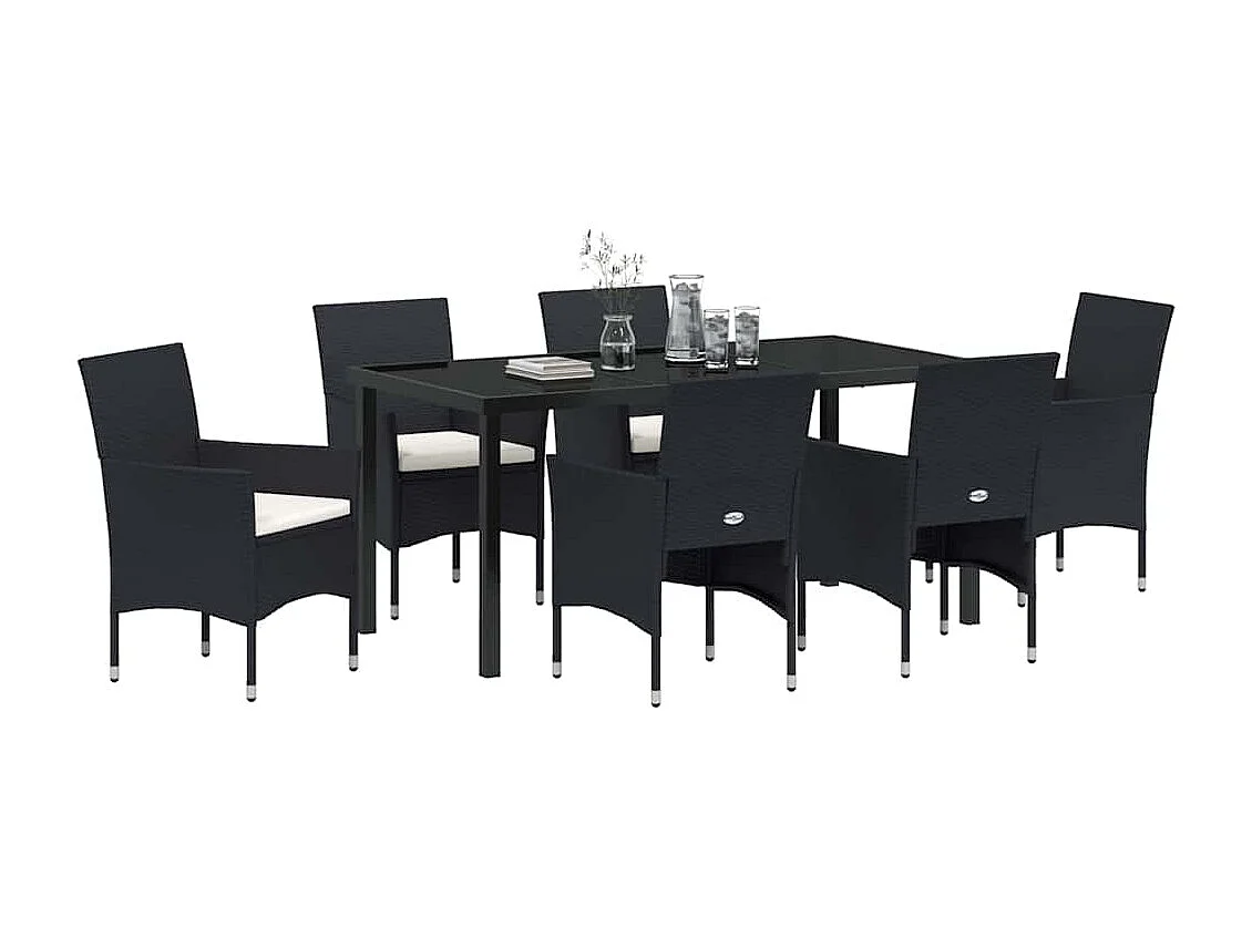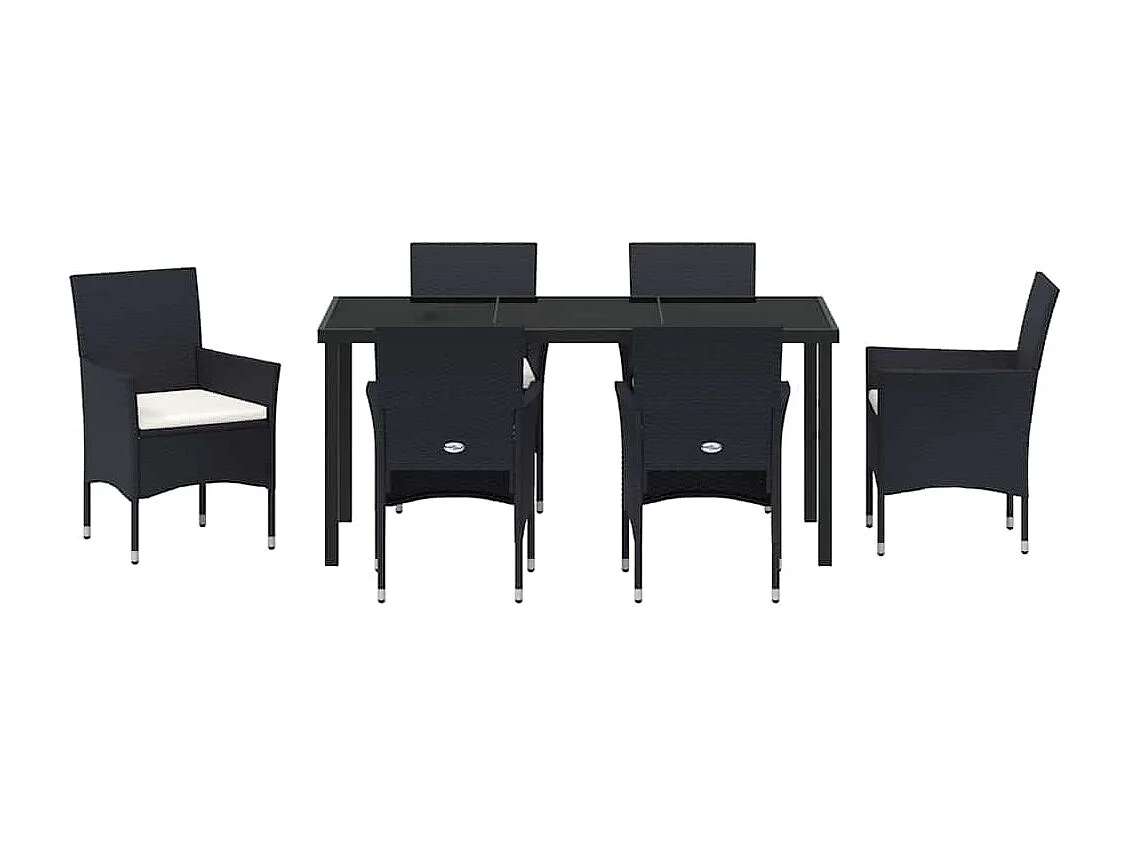 Set de repas de jardin de 7 pièces avec coussins - Poly Rattan noir