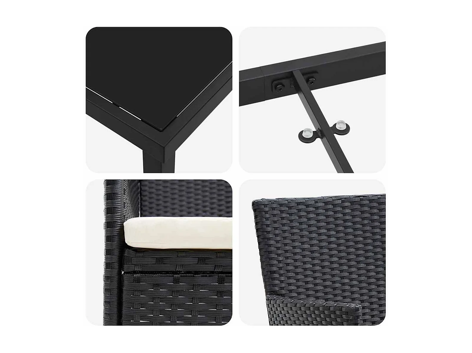 Set de salle à manger de jardin 7 pièces – Rattan poly noir