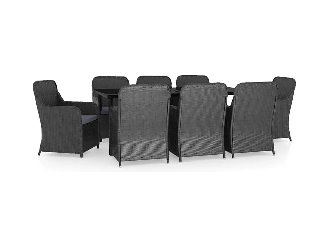 Ensemble à manger de jardin 9 pièces coussins noir résine tressée