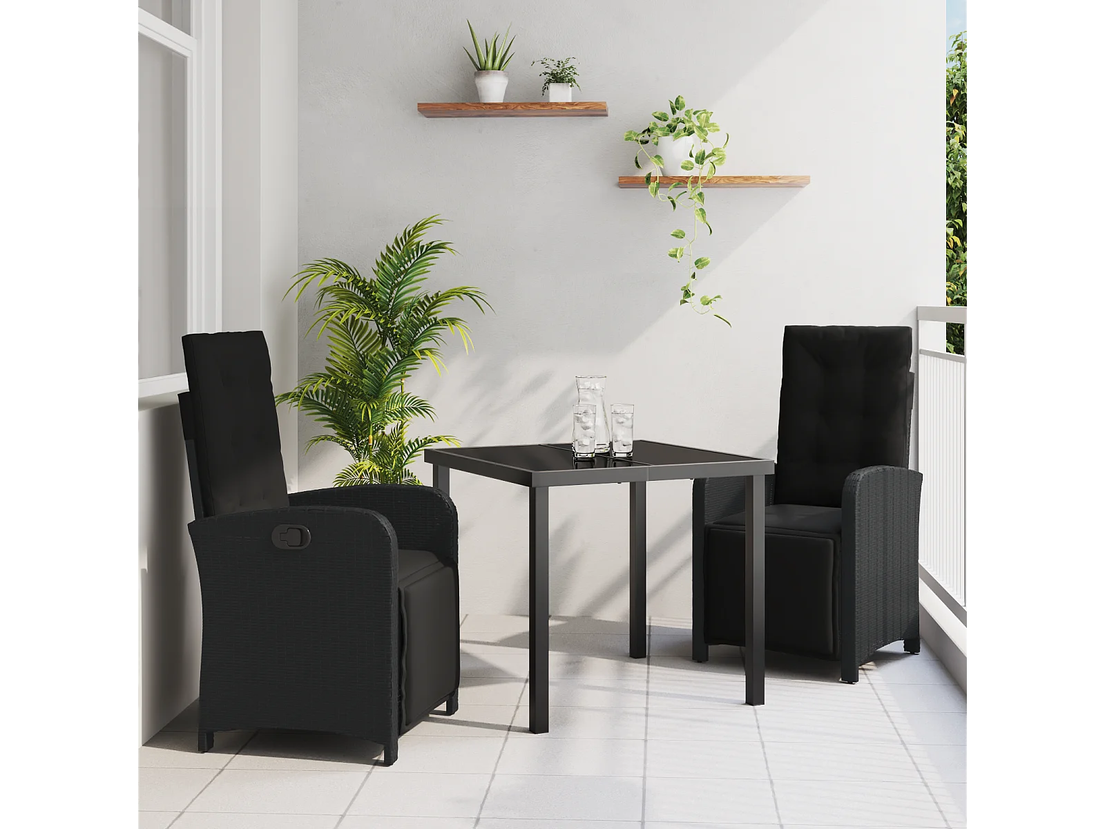 Ensemble de Salle à Manger de Jardin de 3 Pièces avec Coussins en Poly Rattan Noir