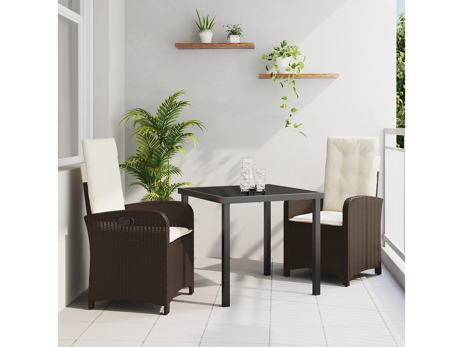Ensemble de salle à manger de jardin de 3 pièces avec coussins - Rattan poly marron