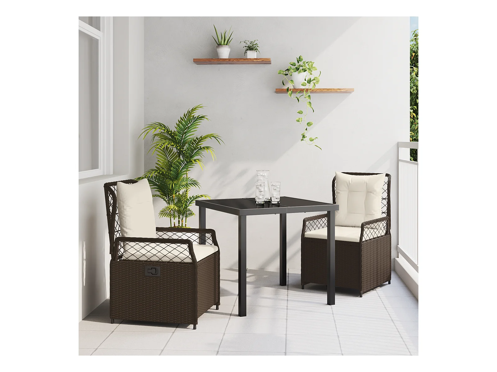 Ensemble de salle à manger de jardin 3 pièces en poly rattan marron