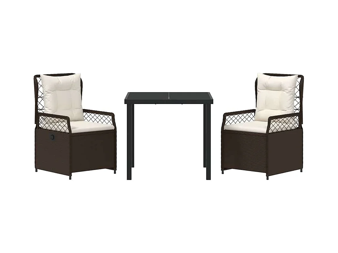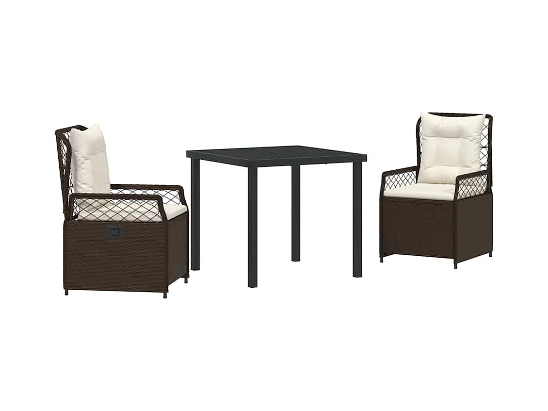 Ensemble de Salle à Manger de Jardin 3 pièces avec coussins en poly rattan marron
