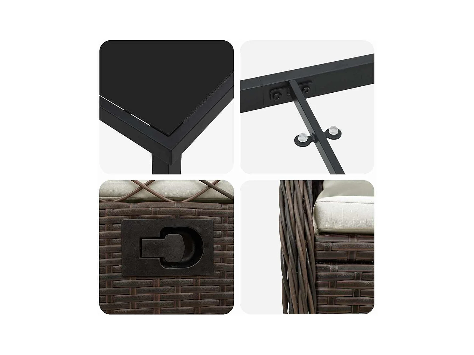 Table de jardin noir 55x55x36 cm résine tressée et bois acacia