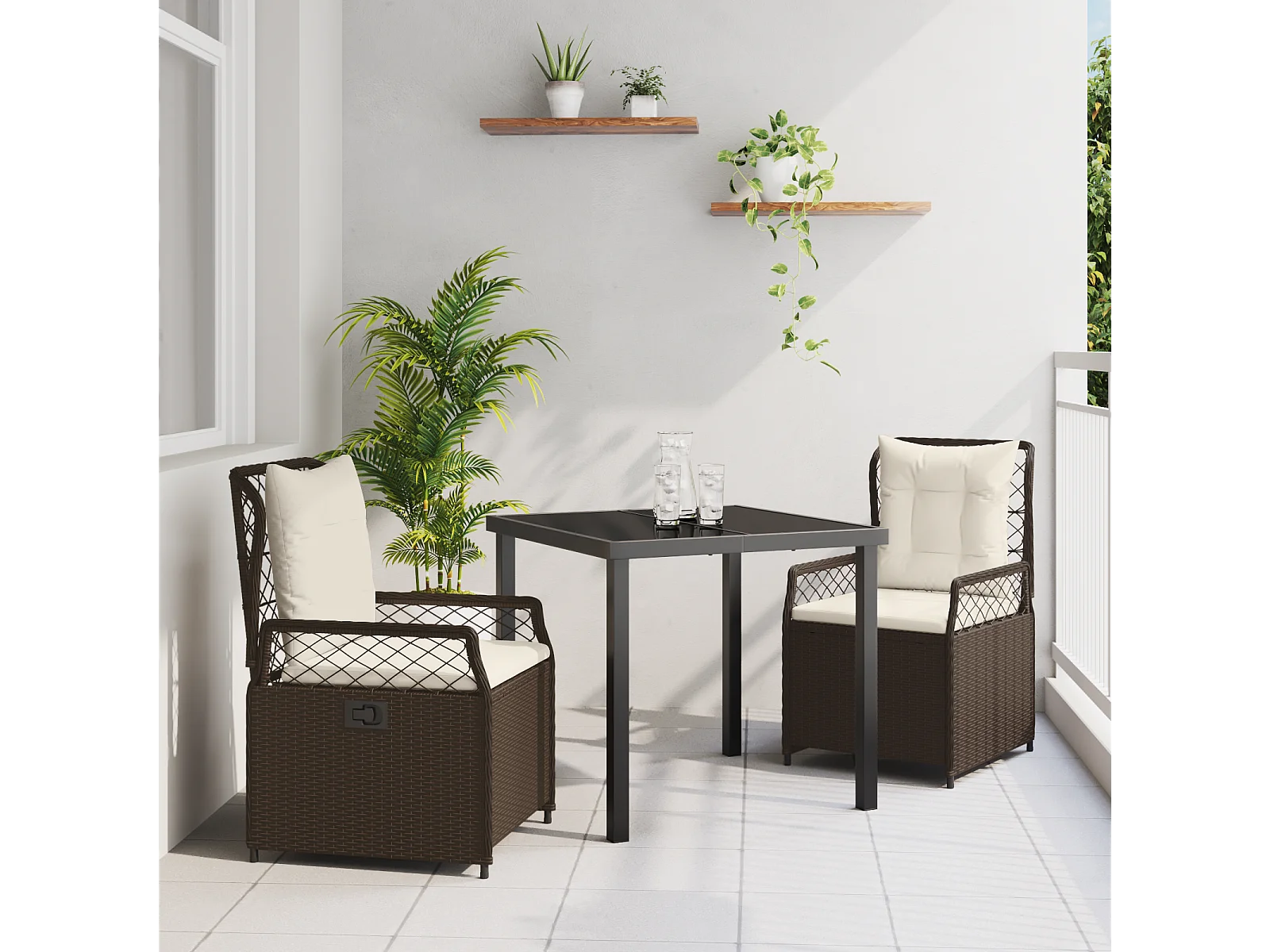 Ensemble de Salle à Manger de Jardin de 3 Pièces Marron Poly Rattan