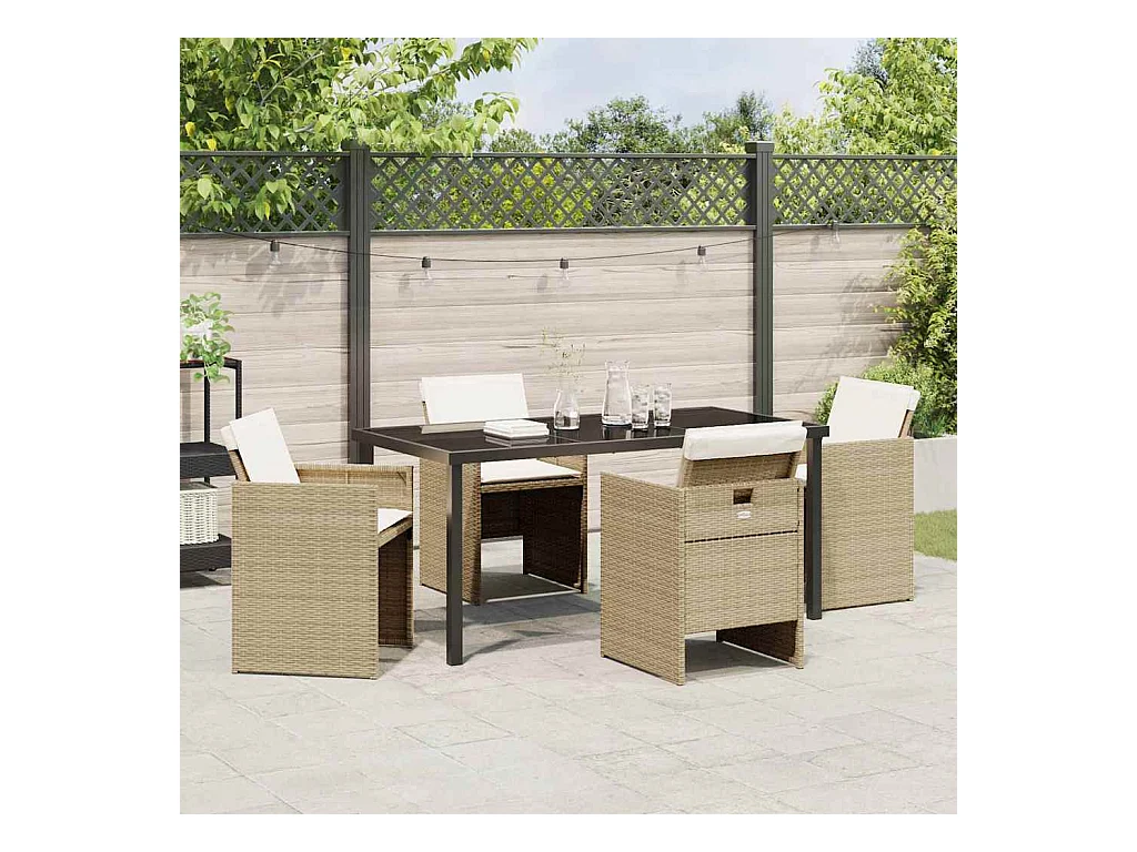 Set de salle à manger jardin 5 pièces avec coussins beige en poly rotin