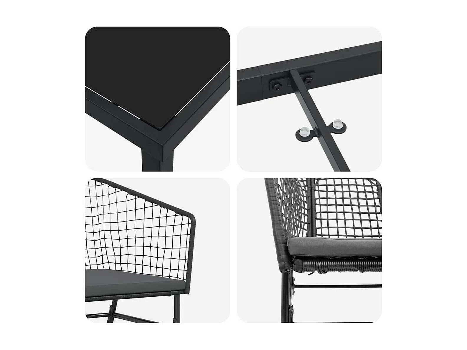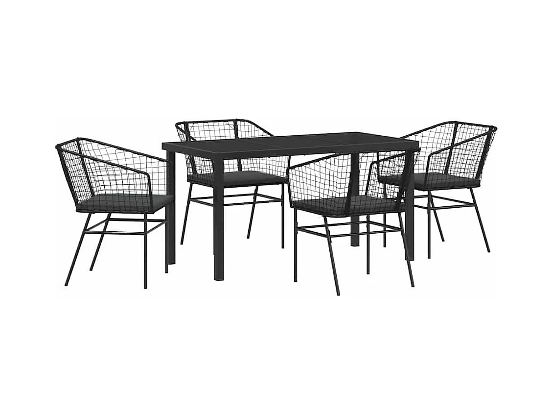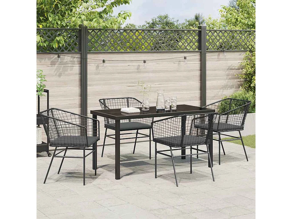 Ensemble de salle à manger de jardin de 5 pièces avec coussins en poly rattan noir
