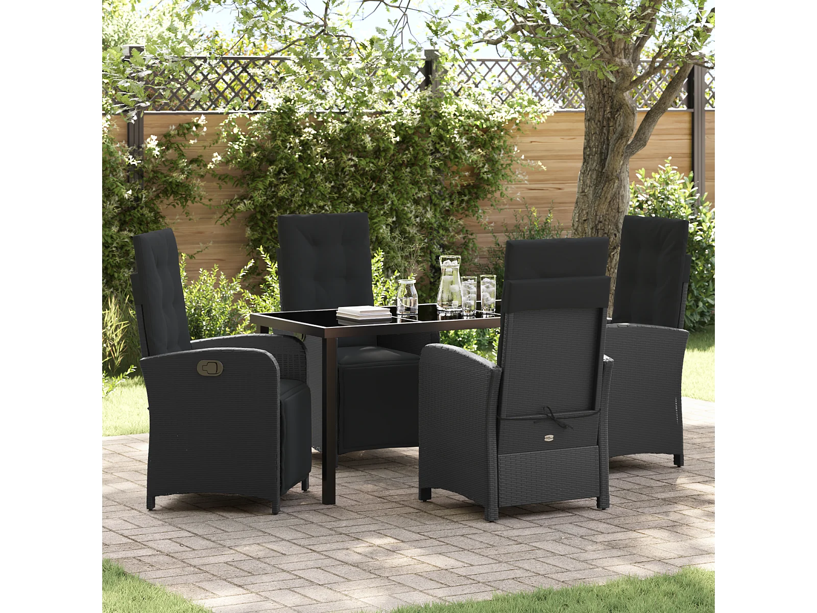 Ensemble de salle à manger de jardin de 5 pièces avec coussins en poly rotin noir