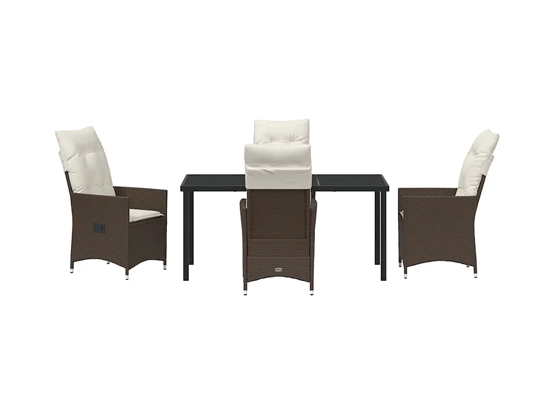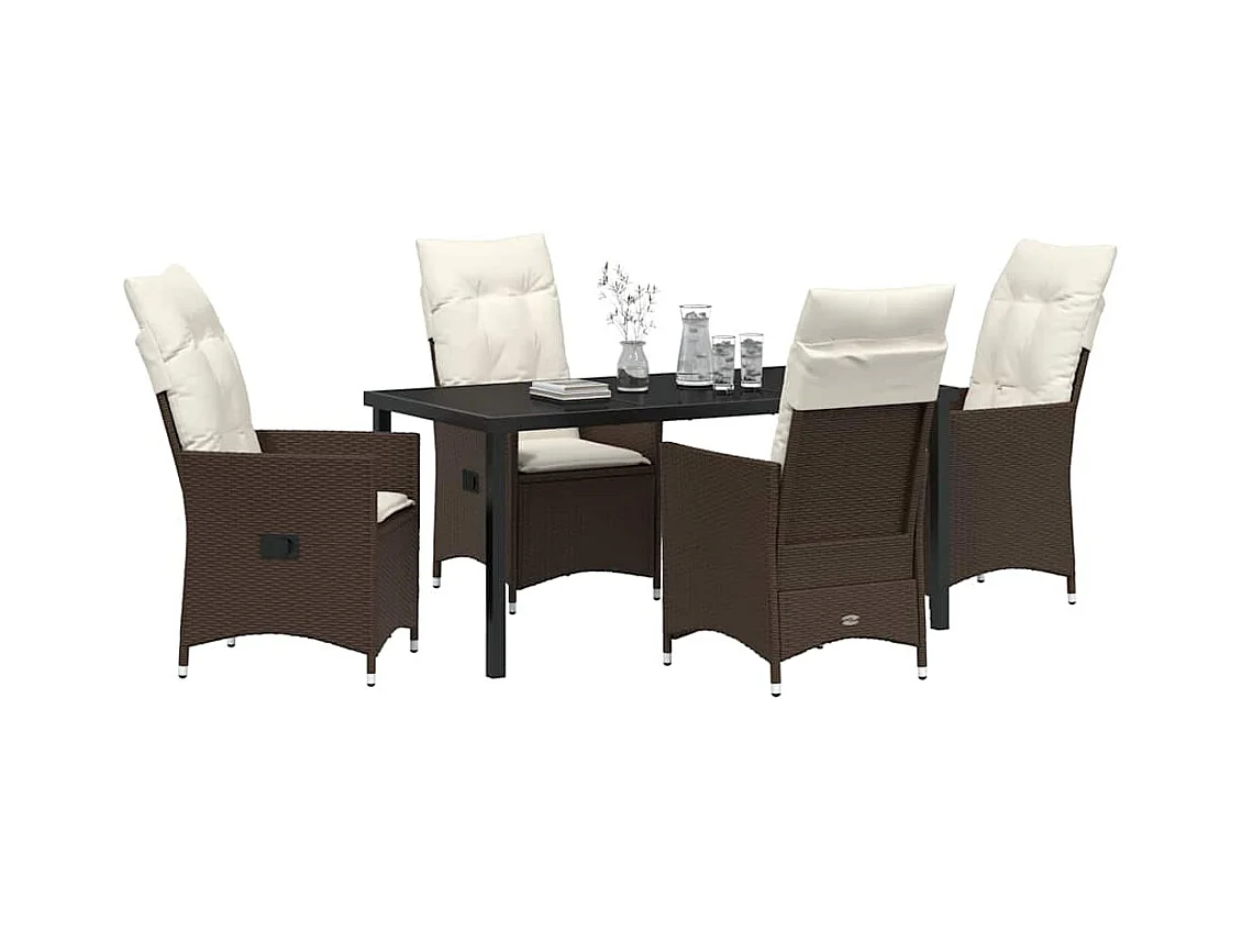 Ensemble de repas de jardin 5 pièces avec coussins marron en rotin poly
