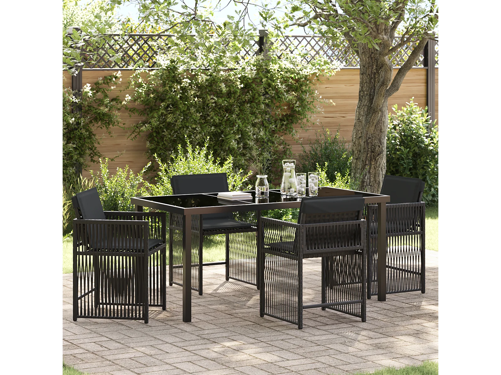 Ensemble de Salle à Manger de Jardin de 5 Pièces avec Coussins Noir Rattan PE