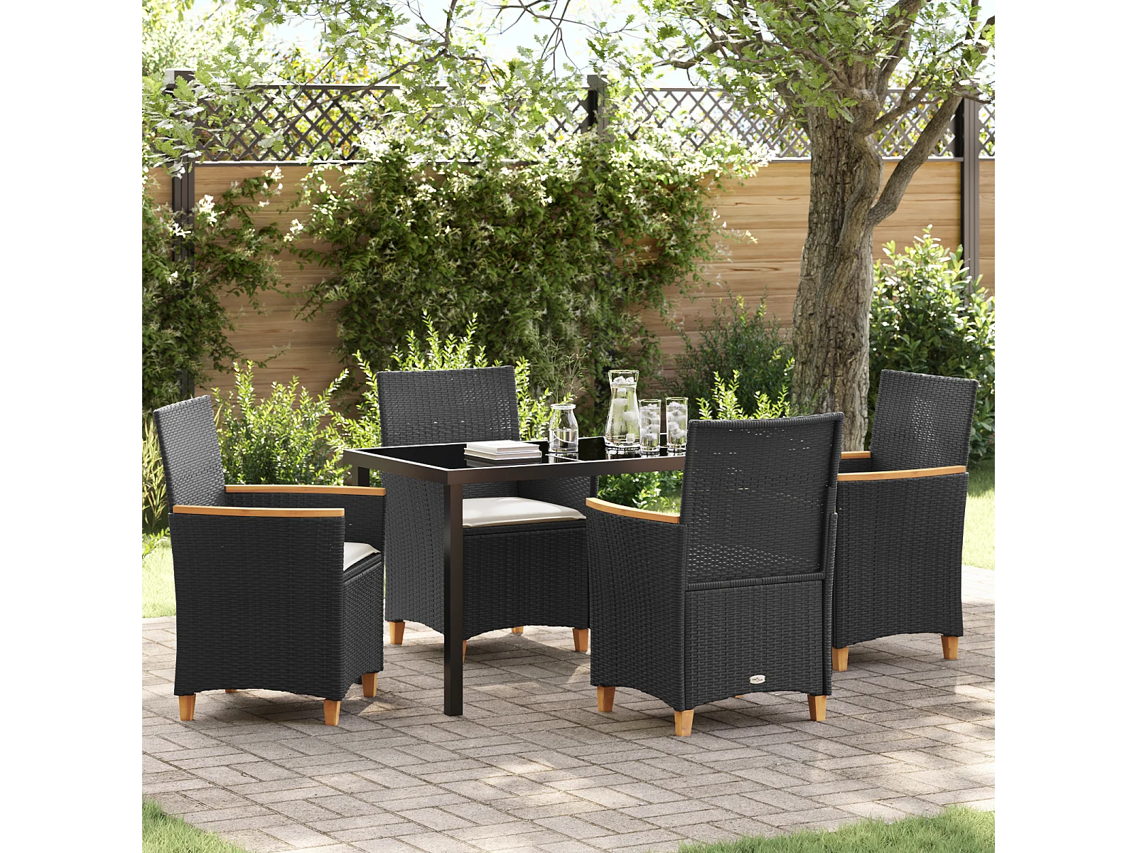 Ensemble de salle à manger de jardin de 5 pièces avec coussins Noir Rattan Poly