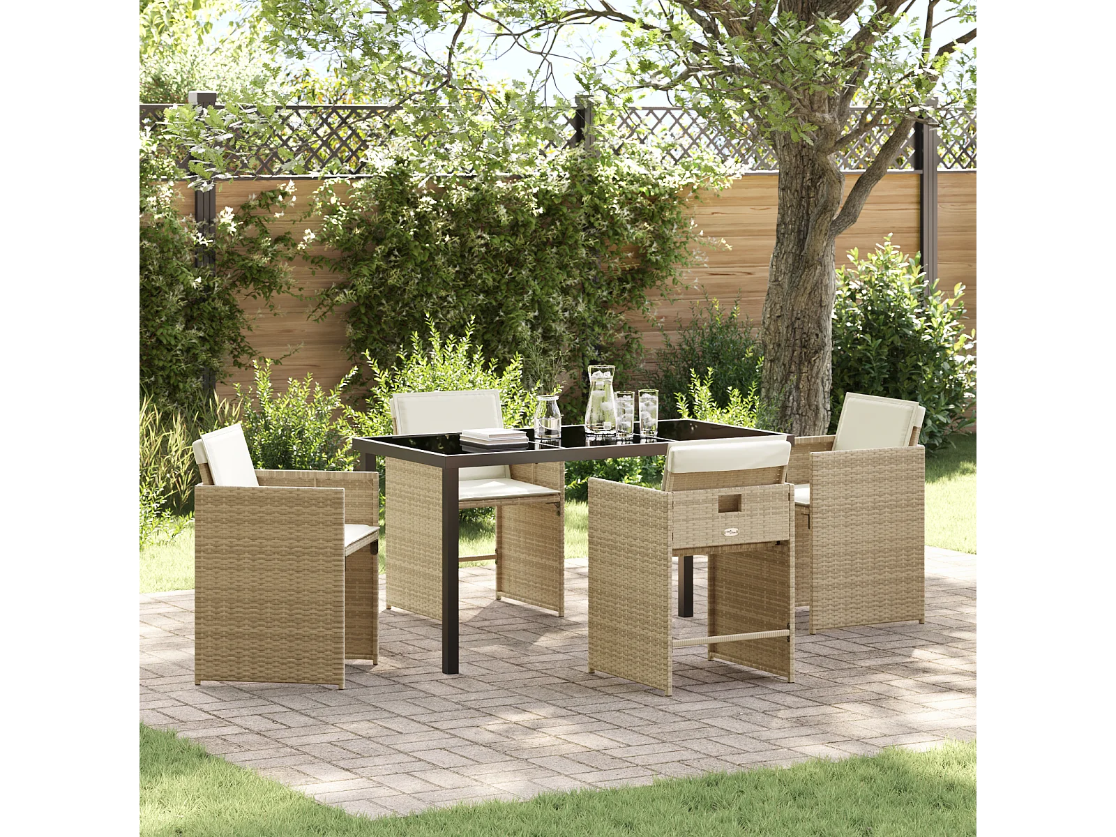 Ensemble de salle à manger de jardin de 5 pièces avec coussins rotin PE beige