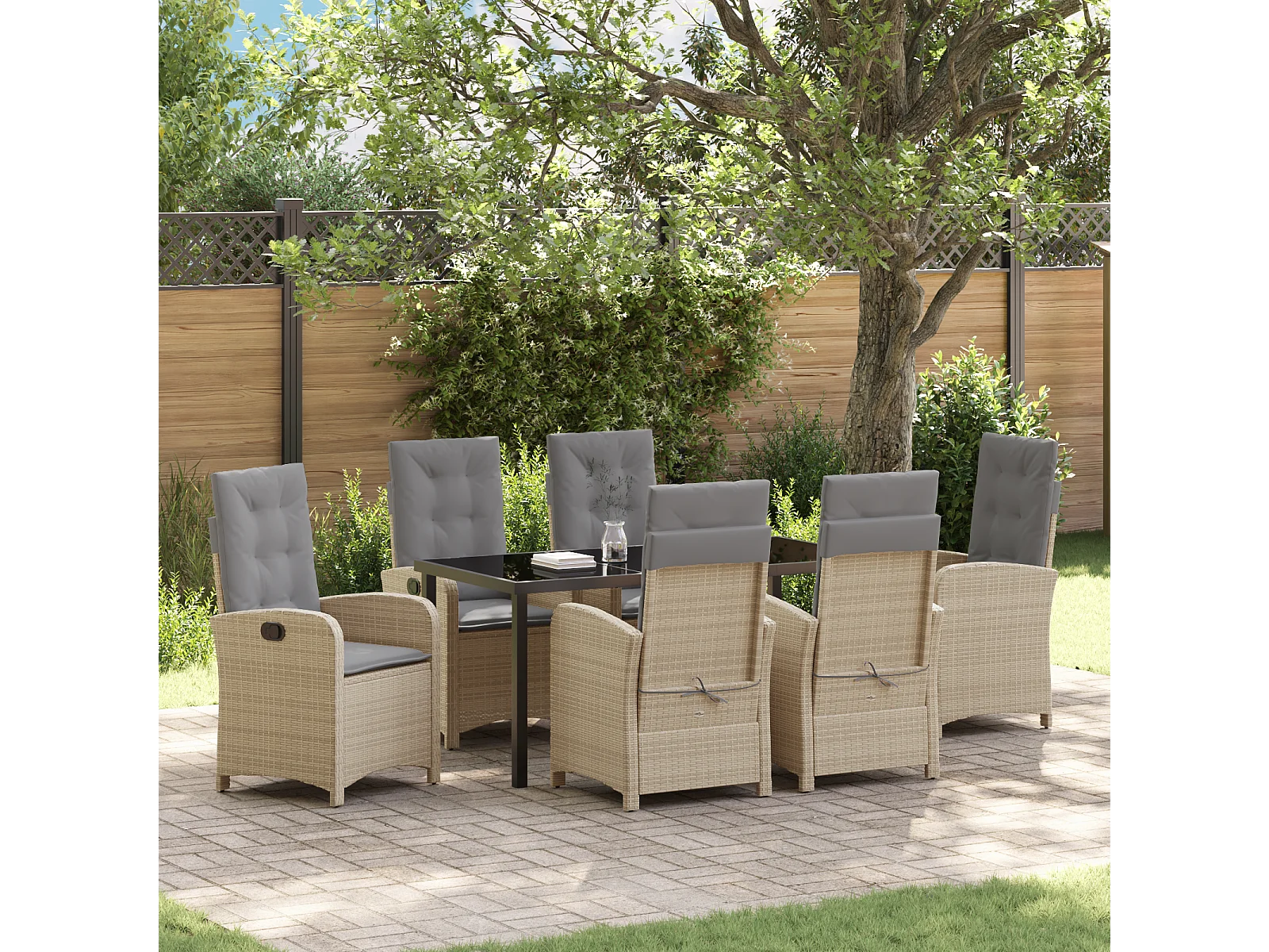 Ensemble de salle à manger de jardin de 7 pièces avec coussins beige en rattan synthétique