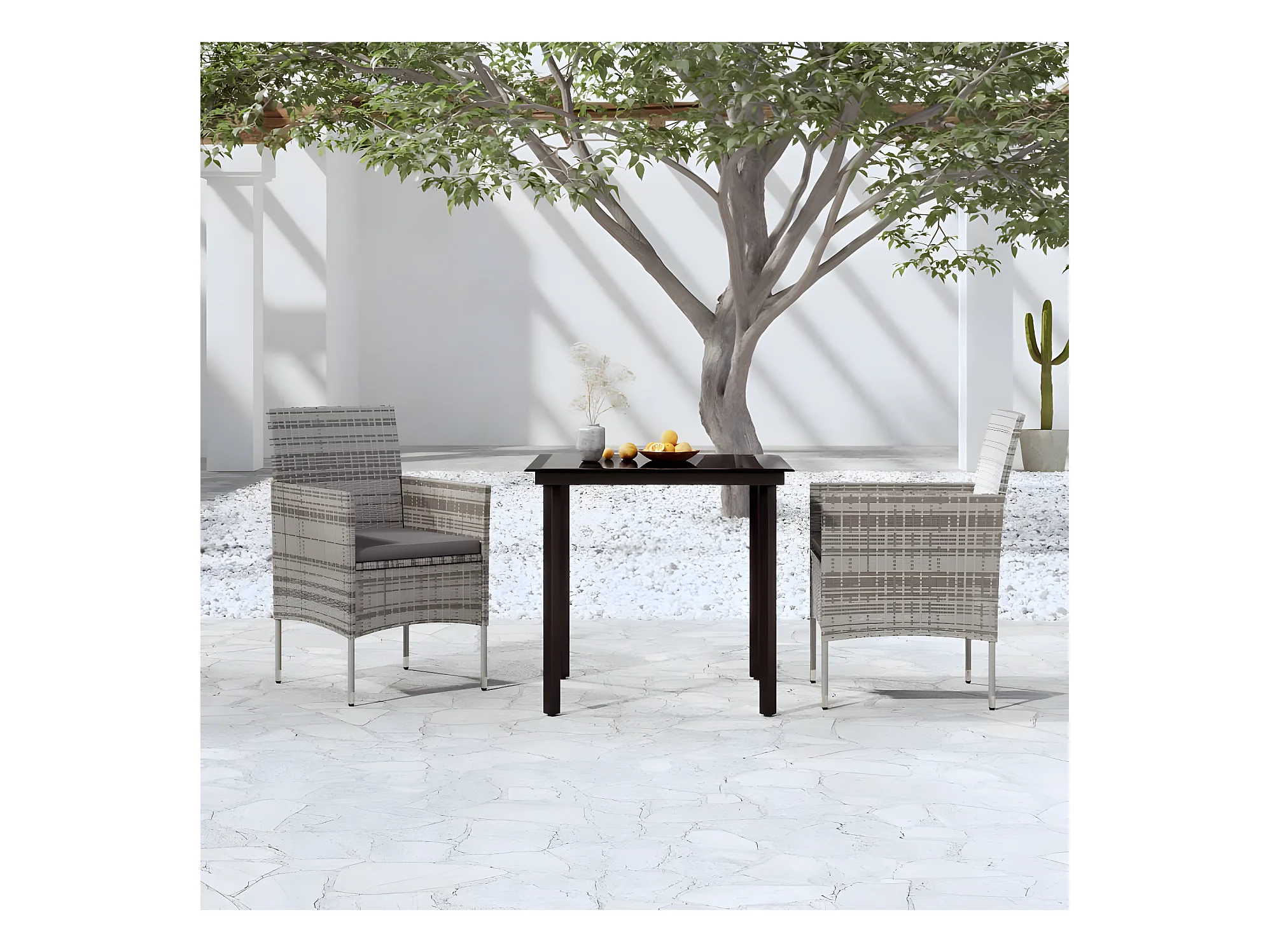 Ensemble à manger de jardin 3 pcs coussins gris résine tressée BE61976