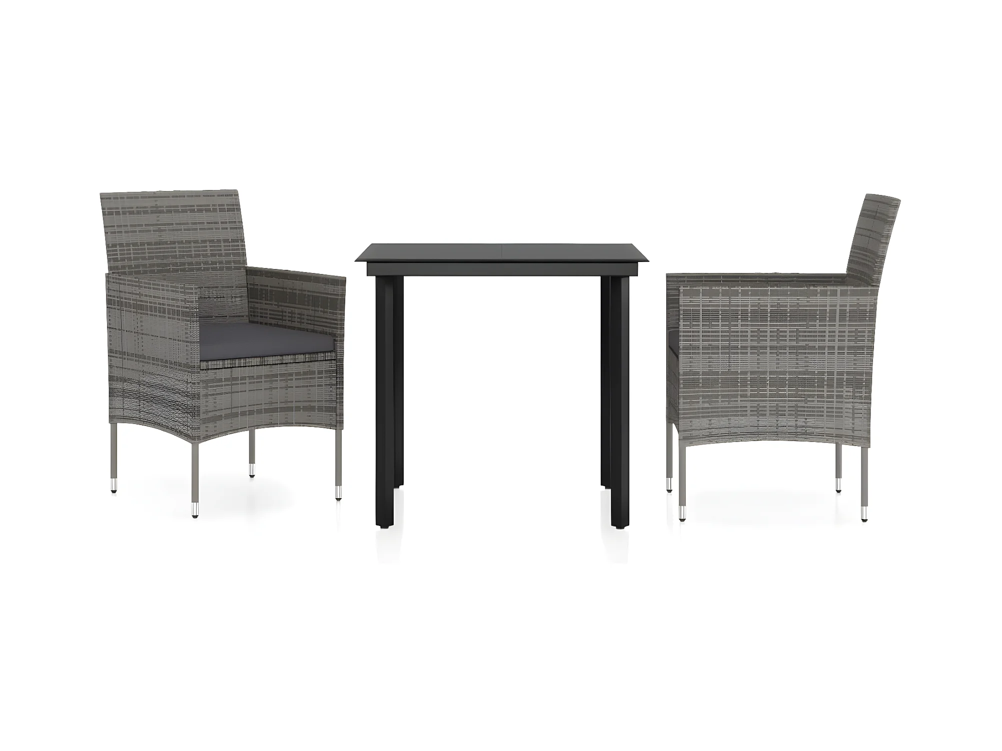 Ensemble de salle à manger de jardin et coussins 3pcs Gris/noir BE21184