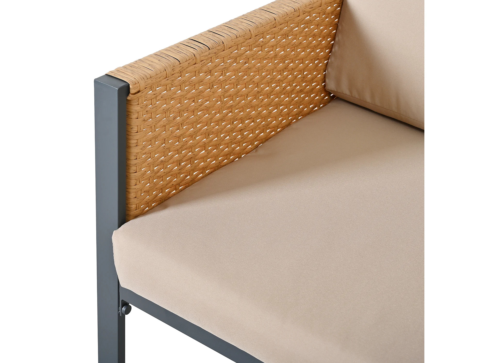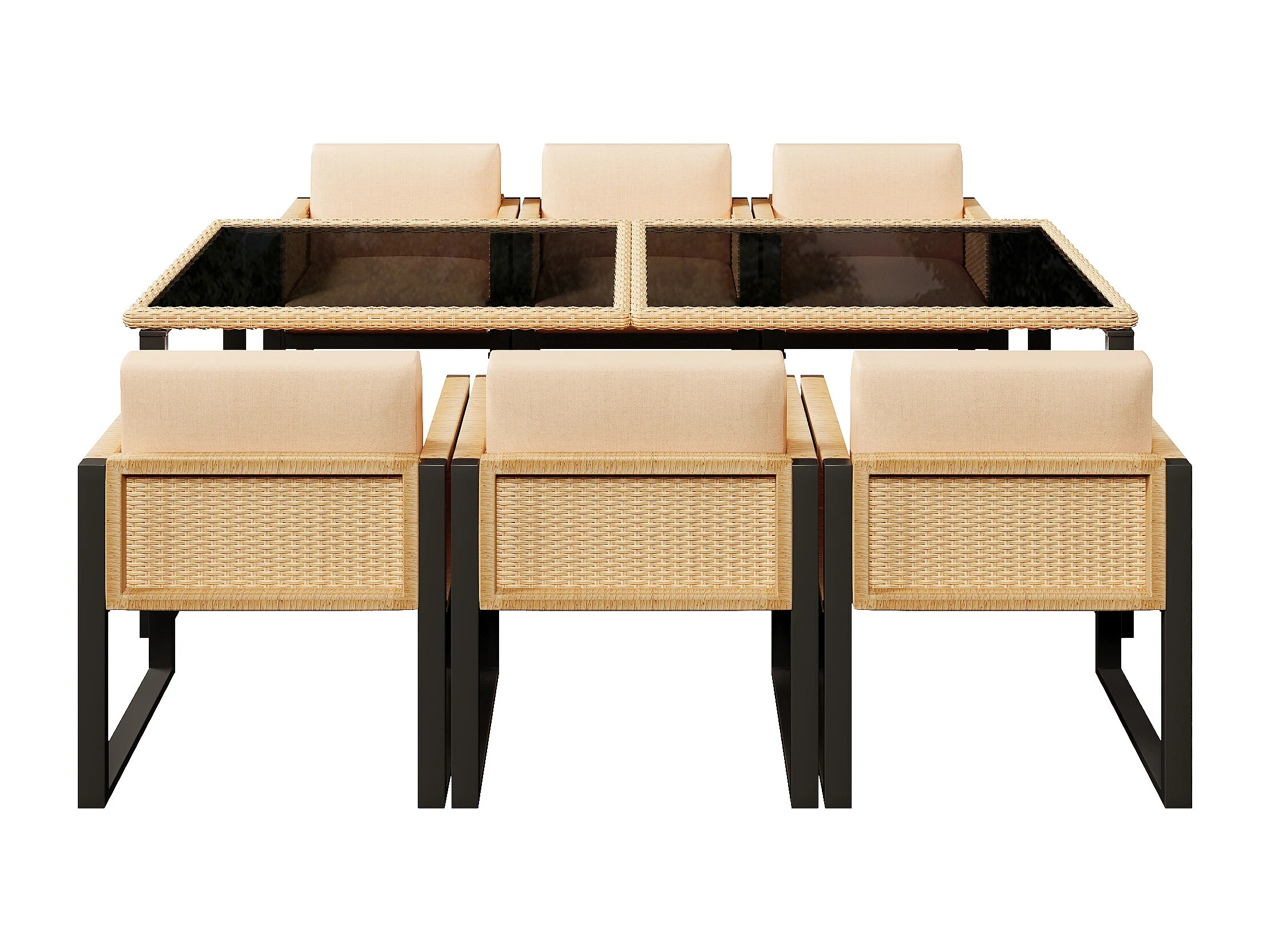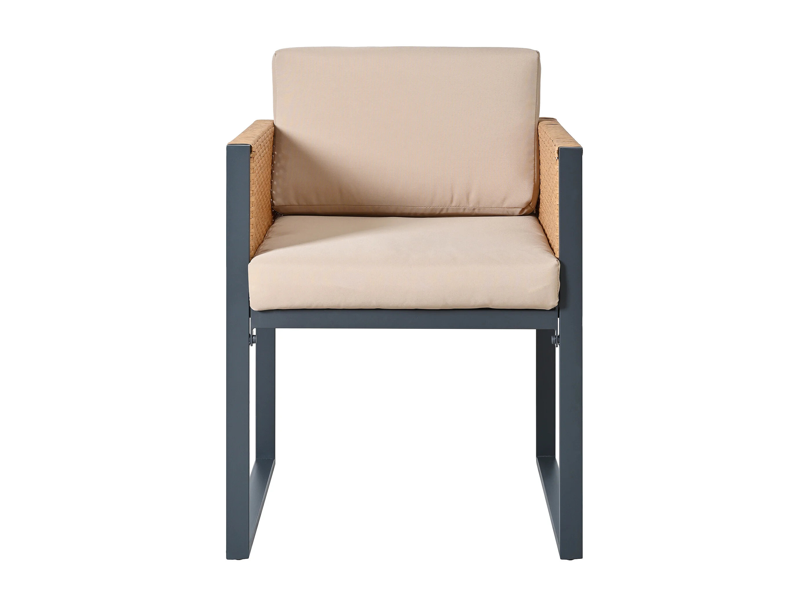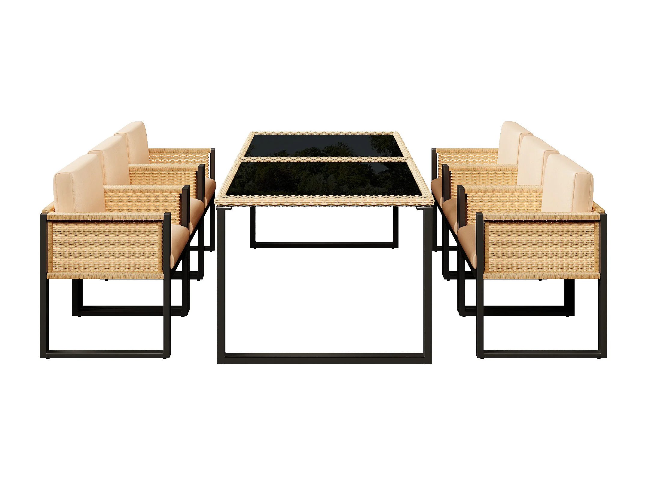 Ensemble de salle à manger de jardin pour 6 personnes - 6 fauteuils - 1 table - structure en fer galvanisé - en tissu amovibles et lavables - brun