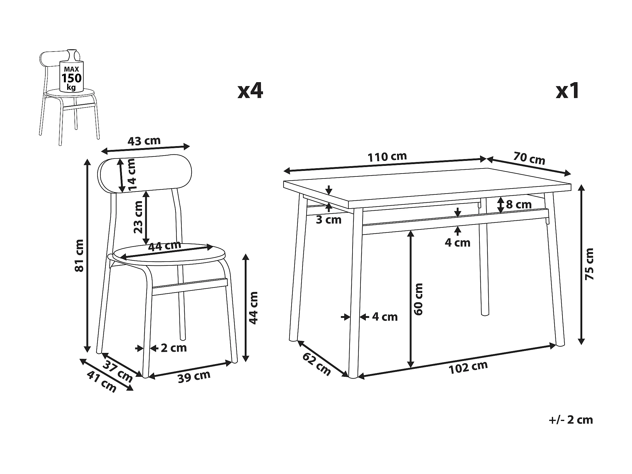 Ensemble de salle à manger gris clair et noir 4 places VELDEN