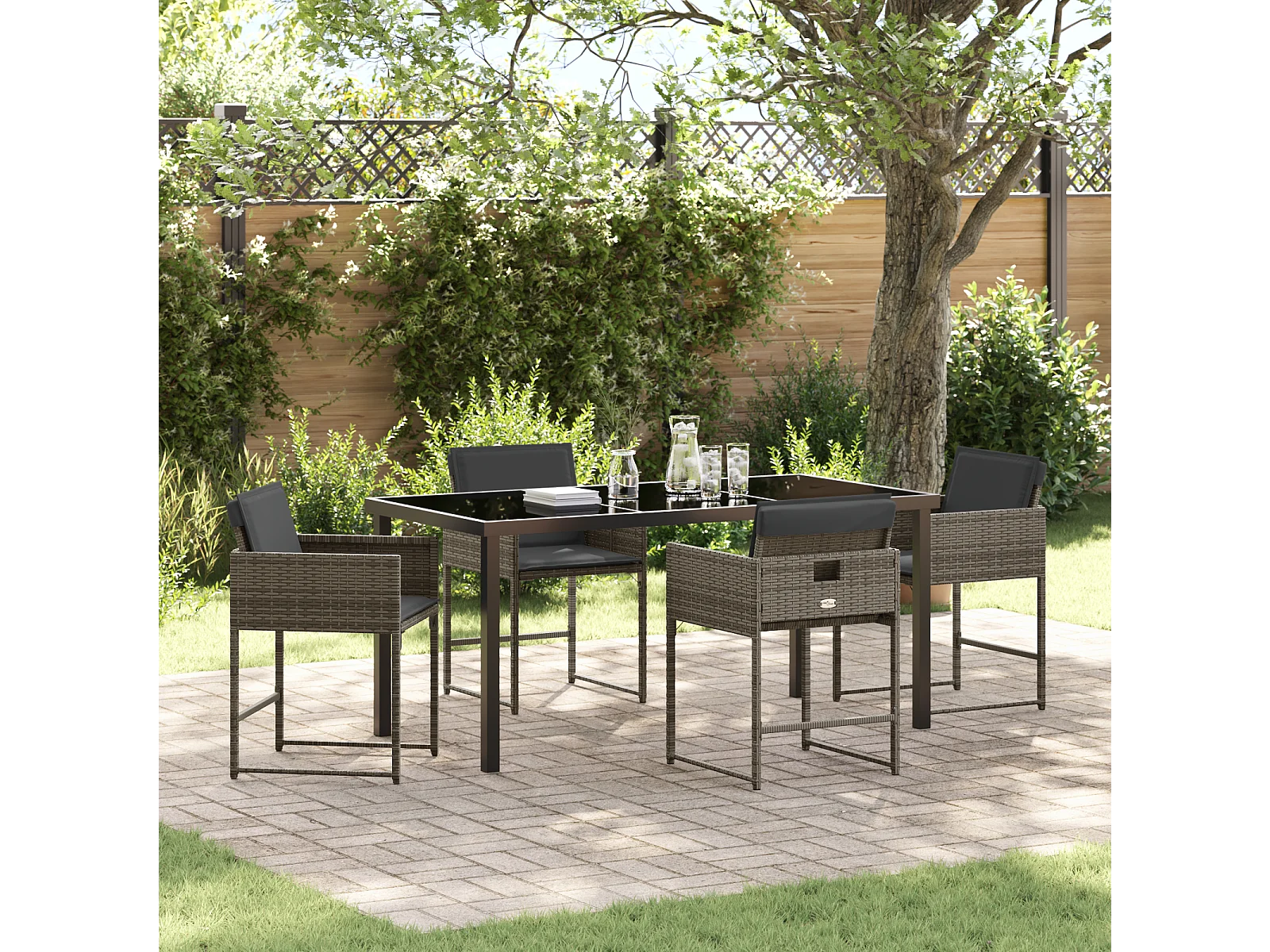 Ensemble de salle à manger jardin 5 pièces avec coussins gris poly rattan