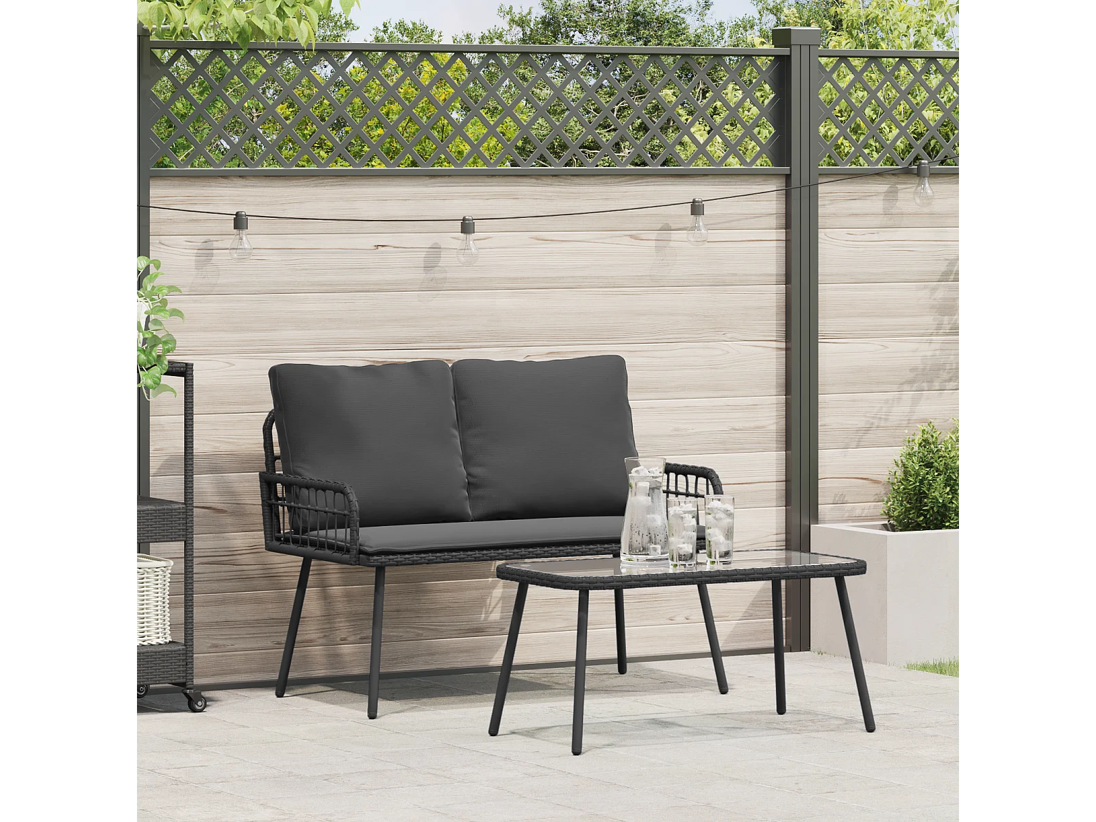 Ensemble de salle à manger jardin avec coussins en poly rattan noir