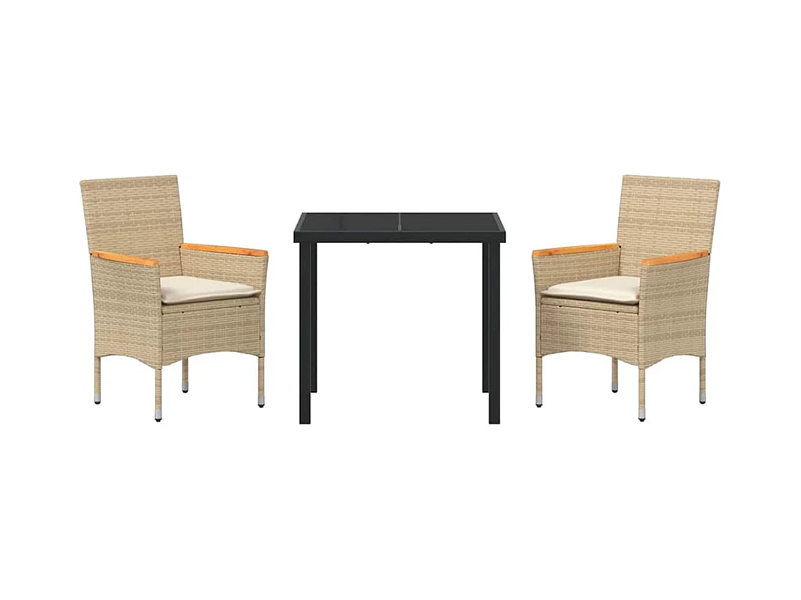 Ensemble de salle à manger pour jardin 3 pcs Beige Poly rotin