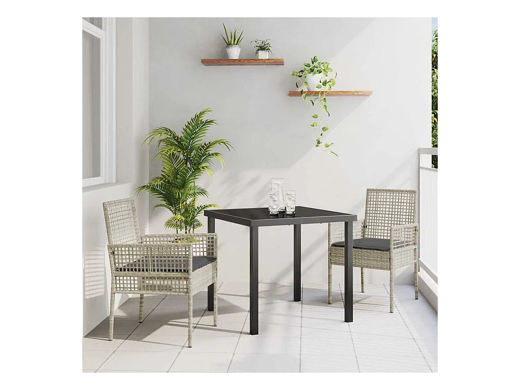 Ensemble de salle à manger pour jardin 3 pcs Gris clair