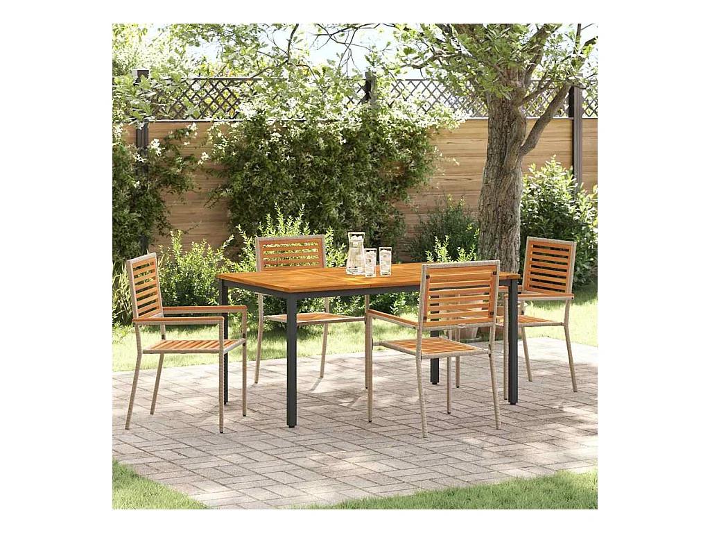 Chaises de jardin empilables avec coussins lot de 4 Teck solide