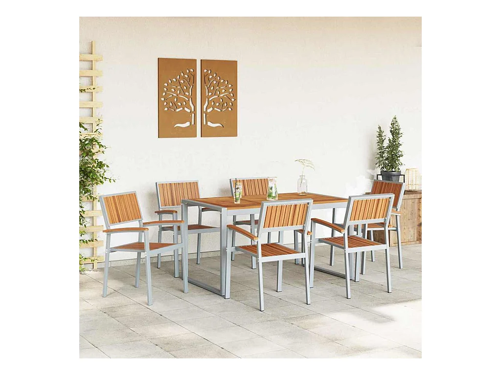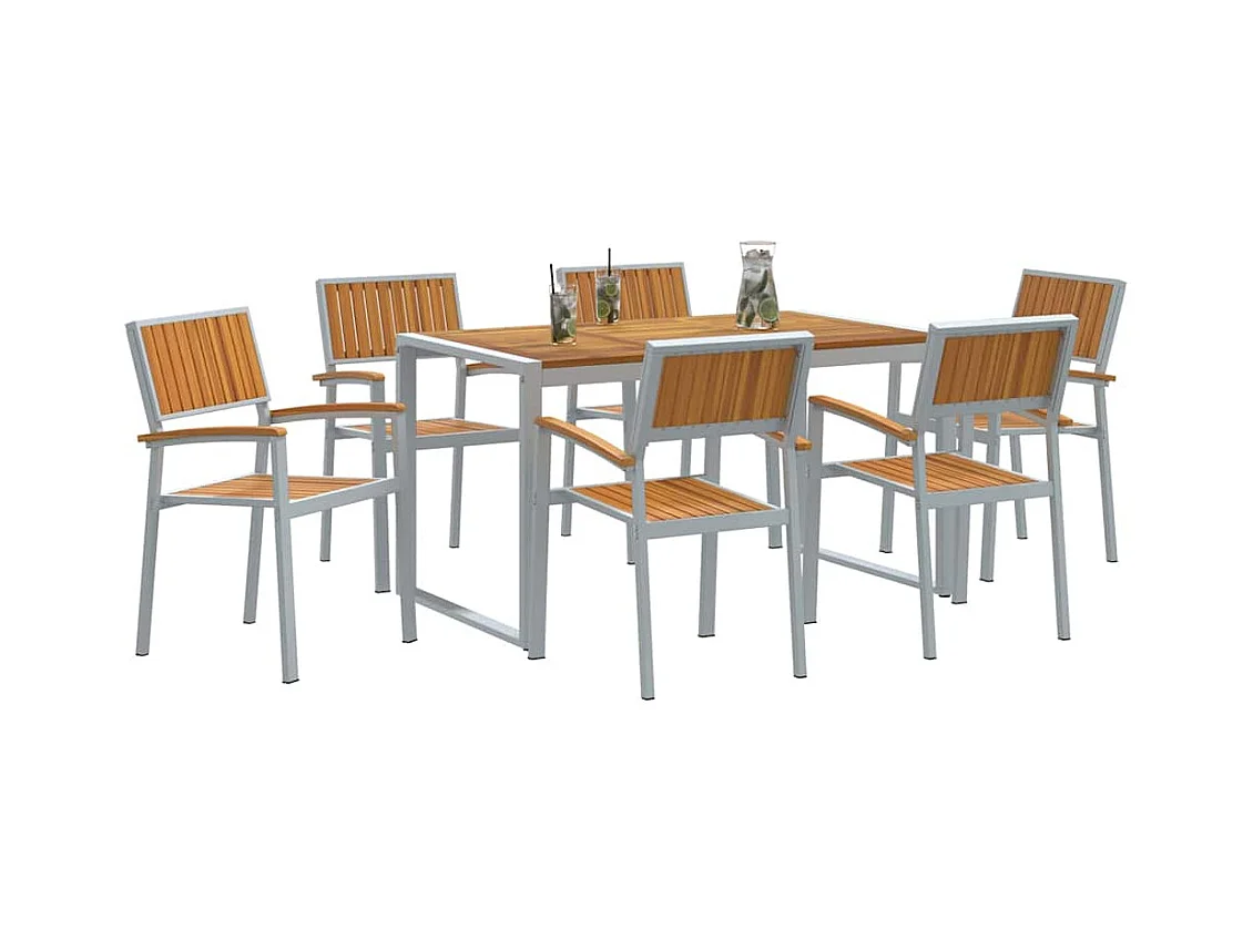 Ensemble de salle à manger pour jardin 7 pcs Marron