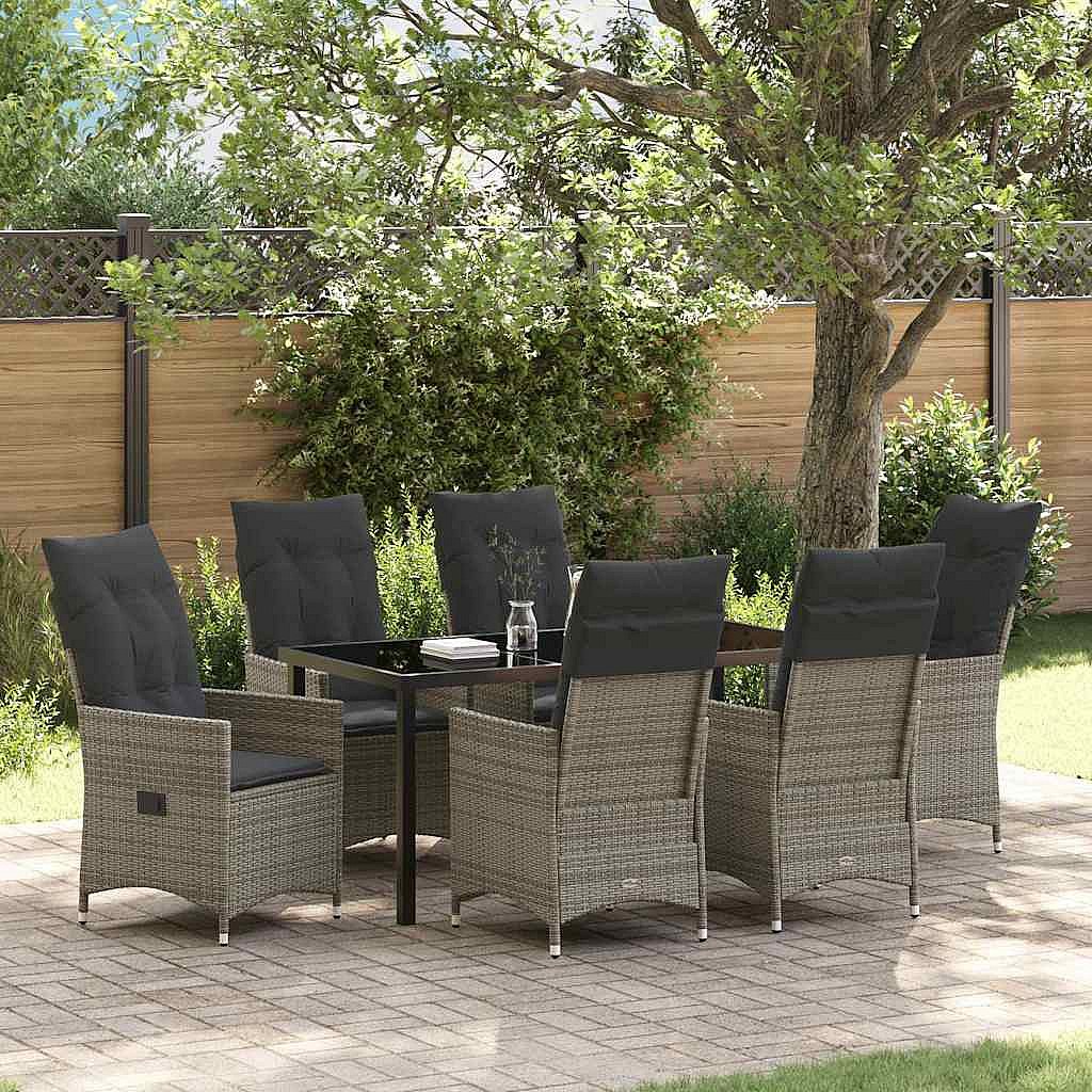 Ensemble de salle à manger pour jardin 7 pcs Gris Poly rotin