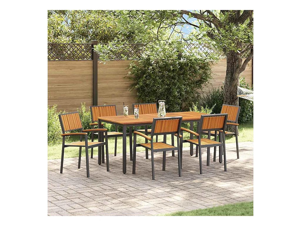 Ensemble de salle à manger pour jardin 7 pcs Noir et marron