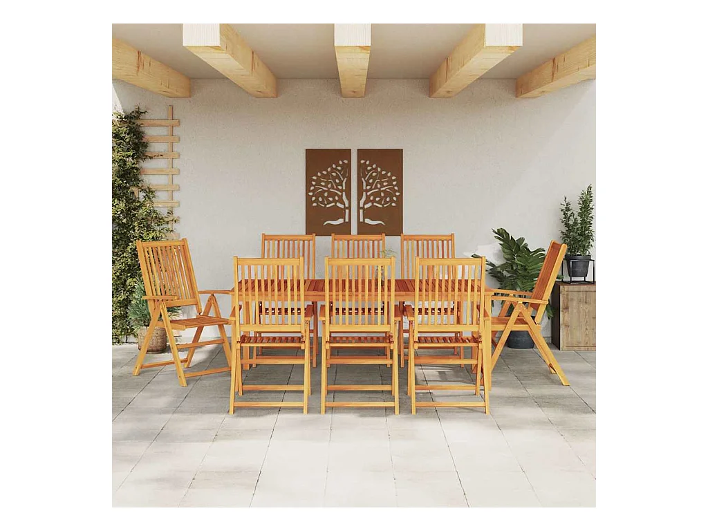 Ensemble de salle à manger pour jardin 9 pcs Marron