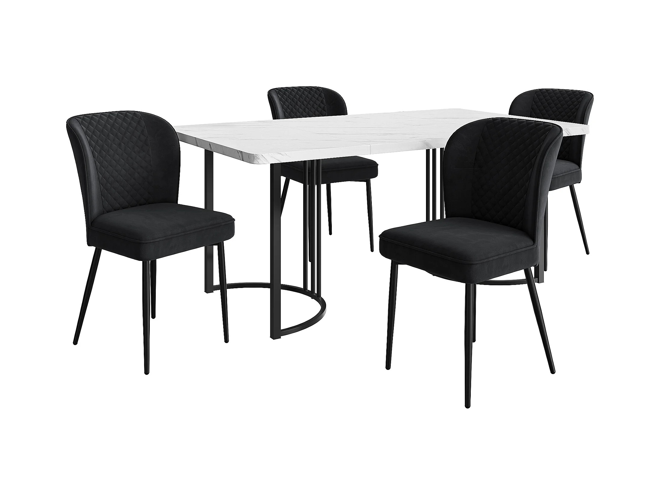 Ensemble table à manger et chaises 5 pièces, table hexagonale marbre moderne + 4 chaises velours noir, MDF + acier, noir (115.5x100x75 cm)