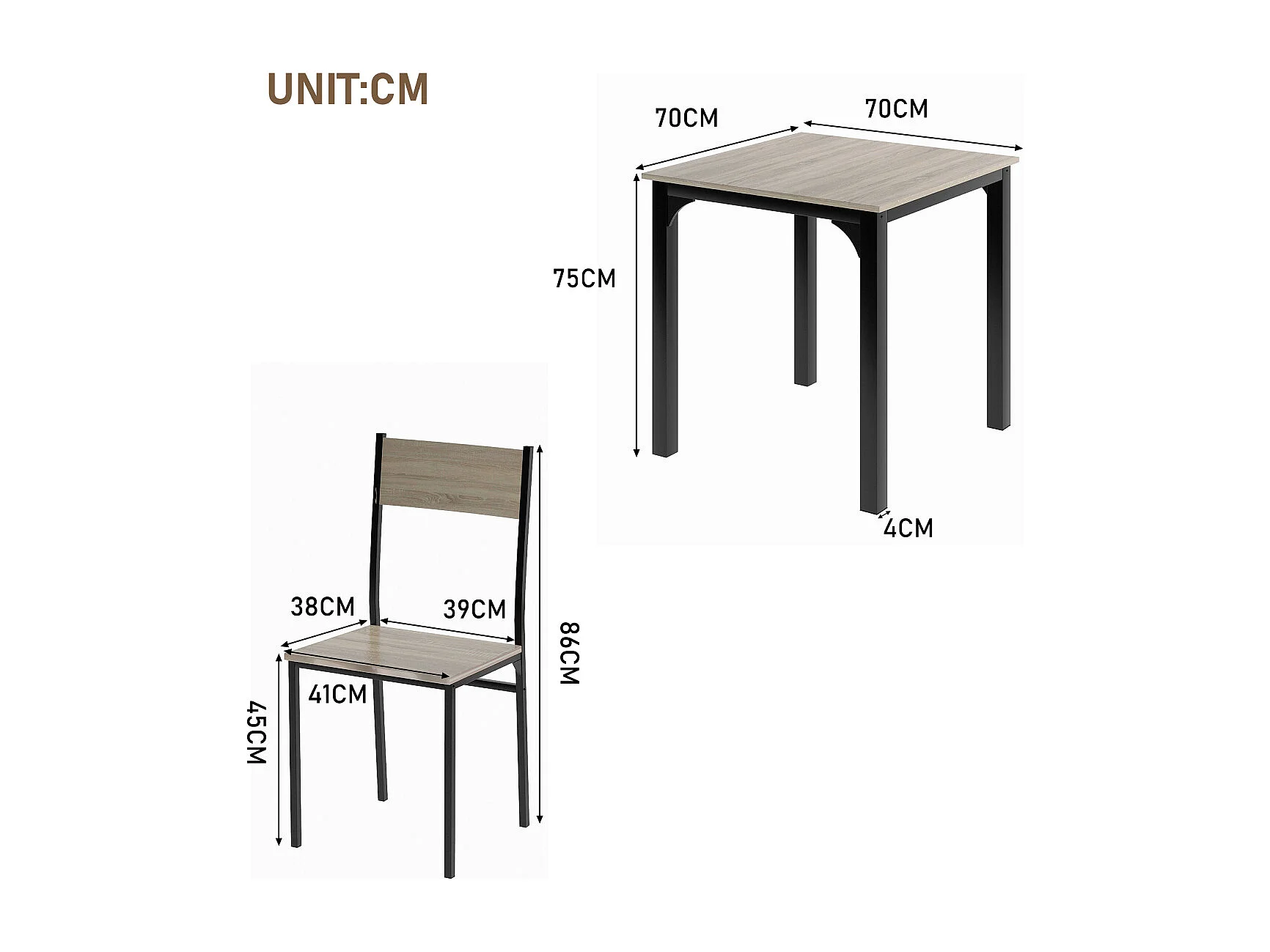 Ensemble de salle à manger : table et 2 chaises pour balcon, salle à manger, salon (couleur naturelle)