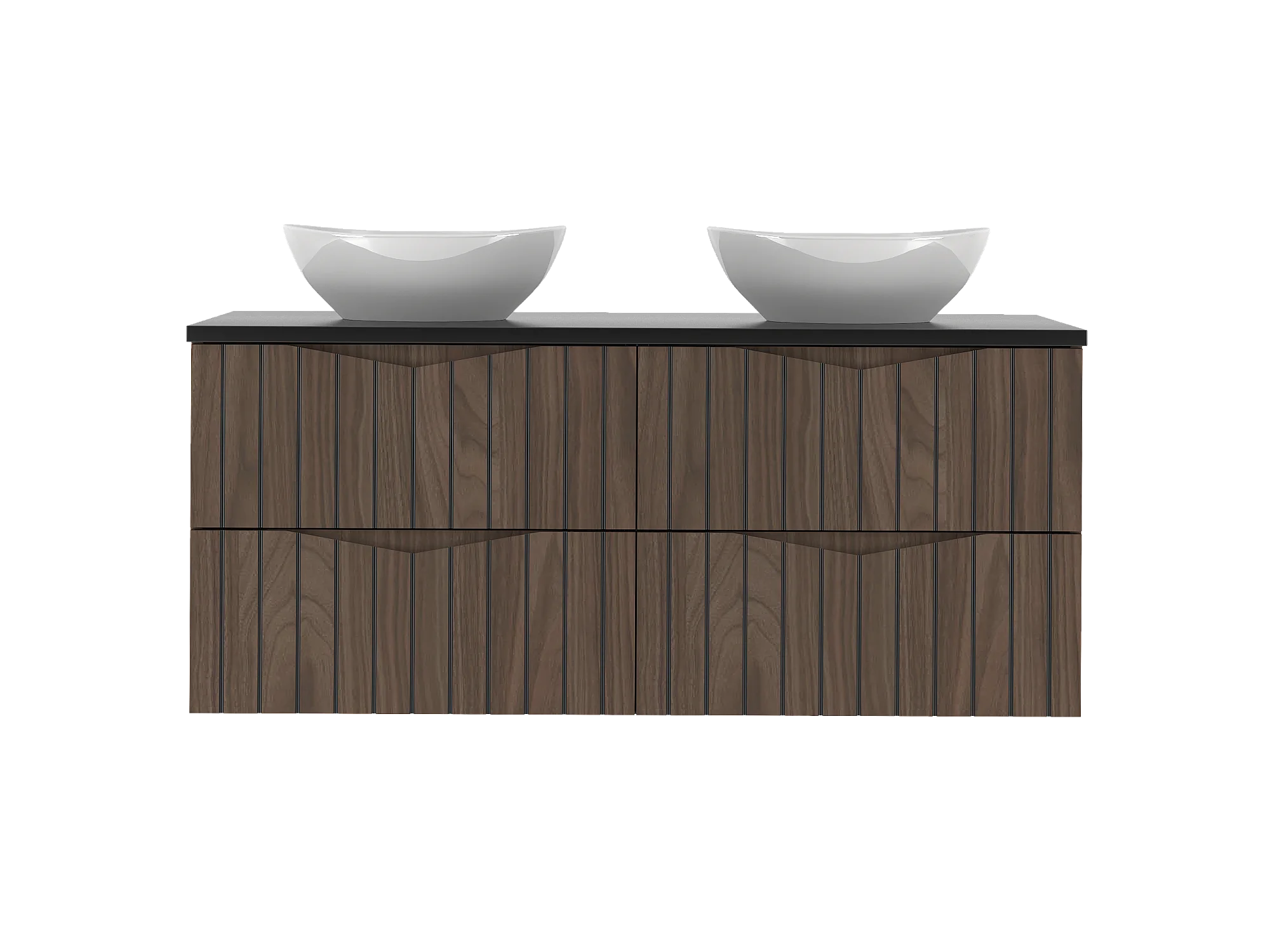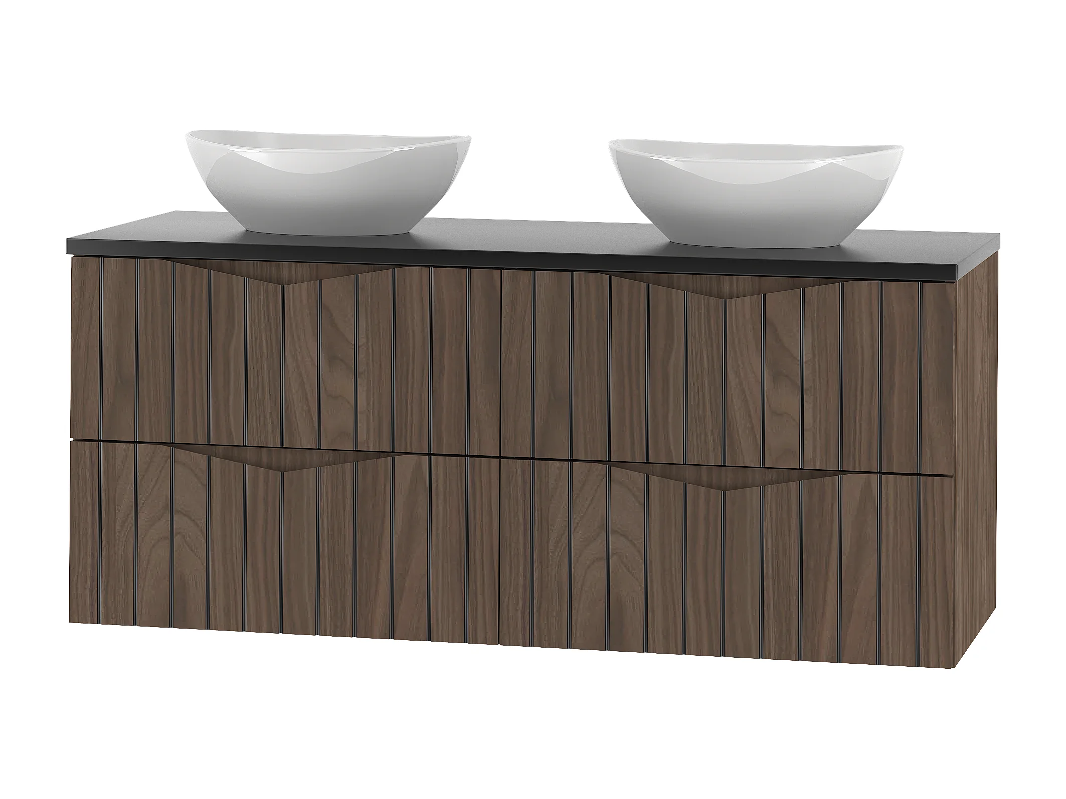 Ensemble de salle de bain 120 cm Armoire avec plan de travail Lavabo Façades rainurées Chêne Noyer Stella