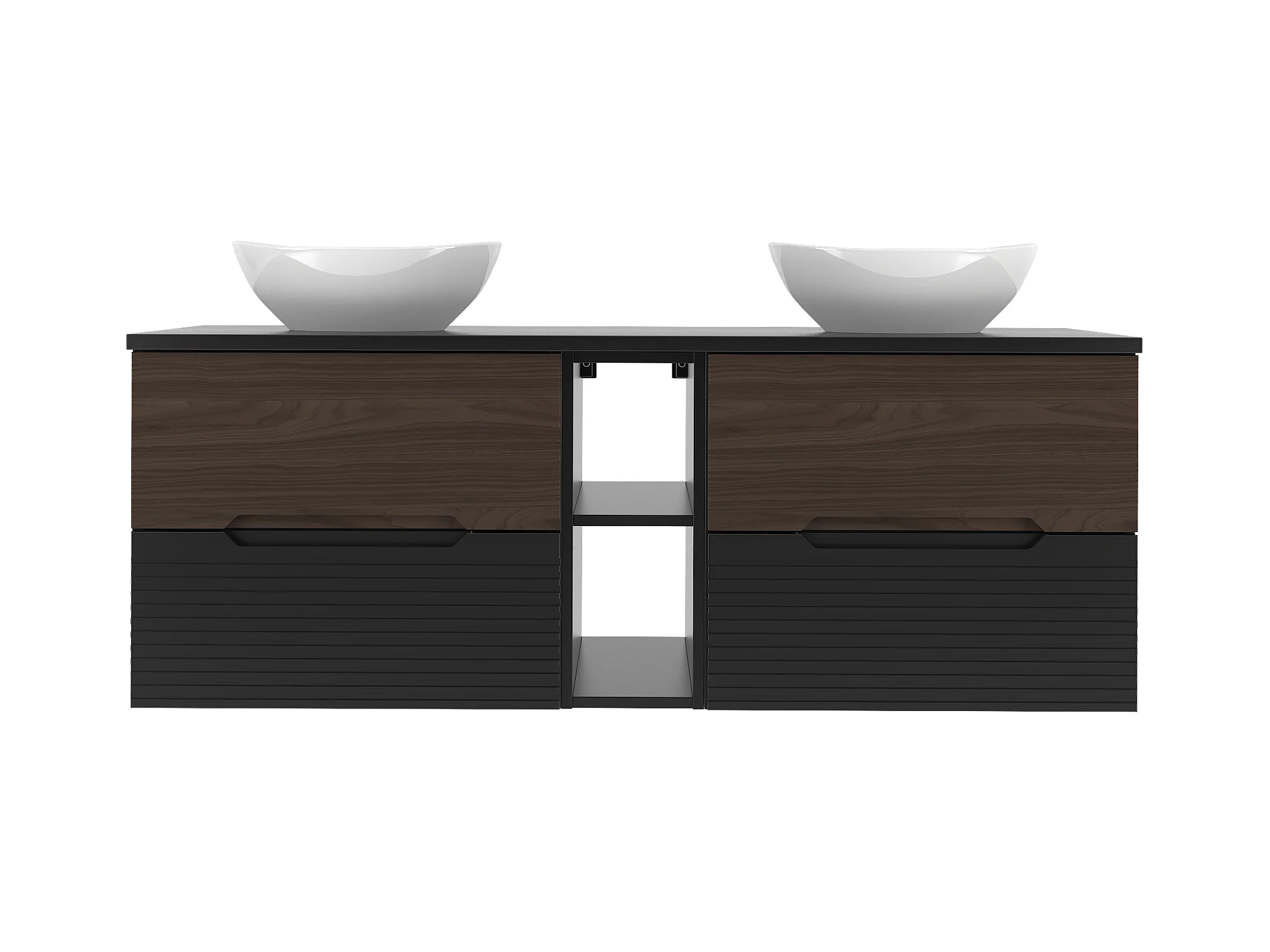 Meuble de salle de bain suspendu en teck foncé avec double vasque - 2 tiroirs - 115 cm - BIMBING