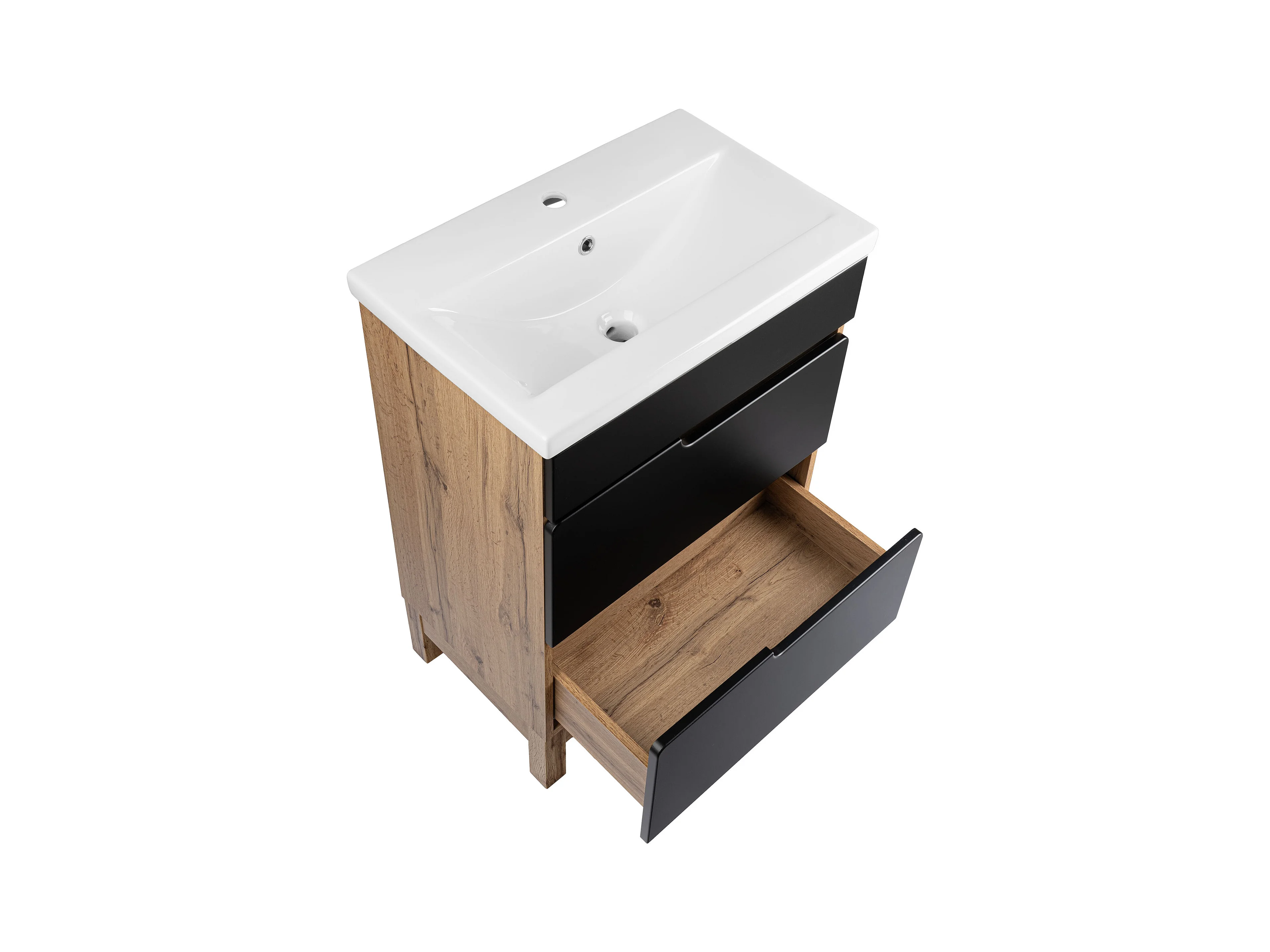 Ensemble de salle de bain 60 cm Alma Colonne Chêne Wotan / Noir mat