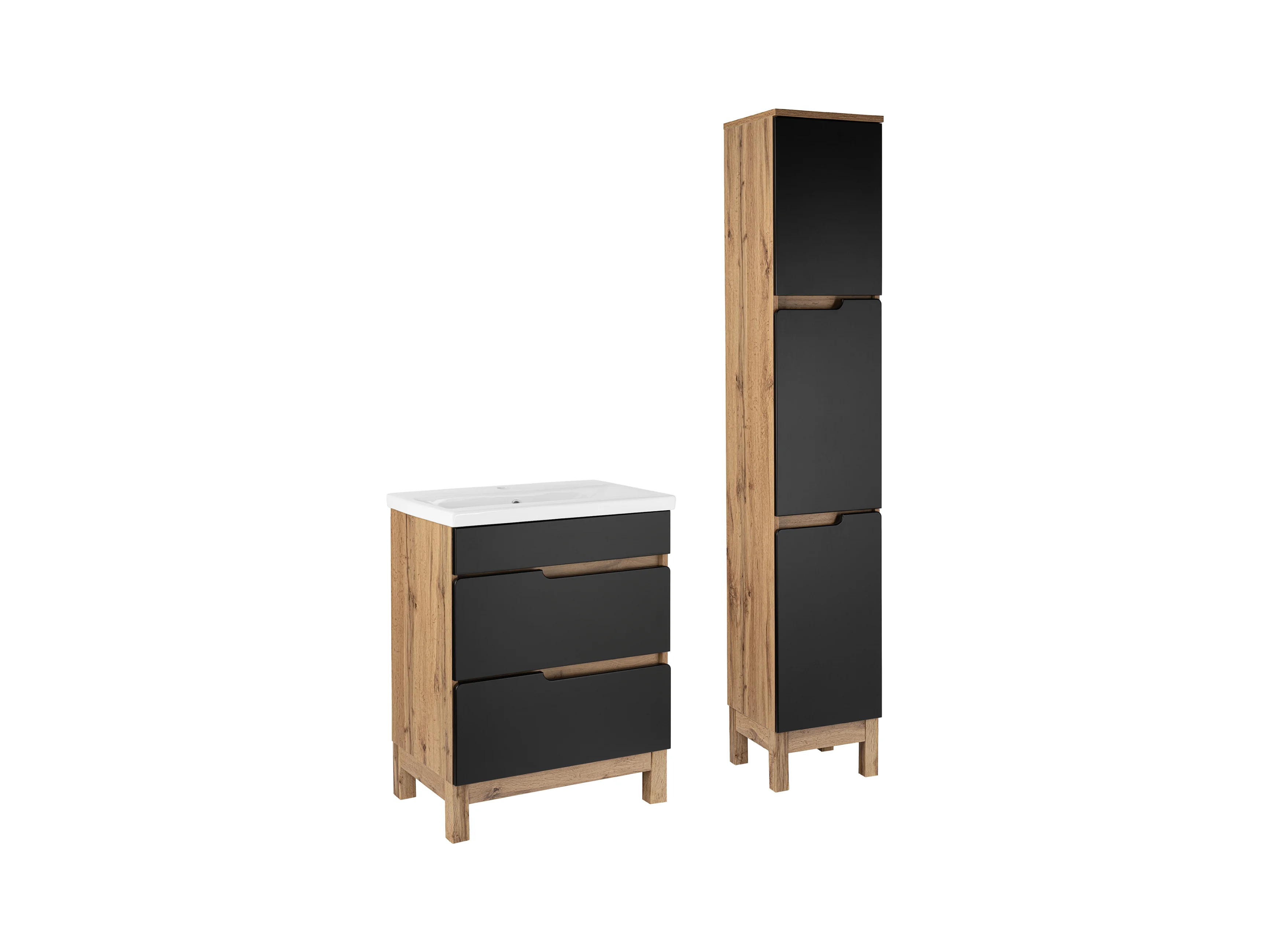 Ensemble de salle de bain 60 cm Alma Colonne Chêne Wotan / Noir mat