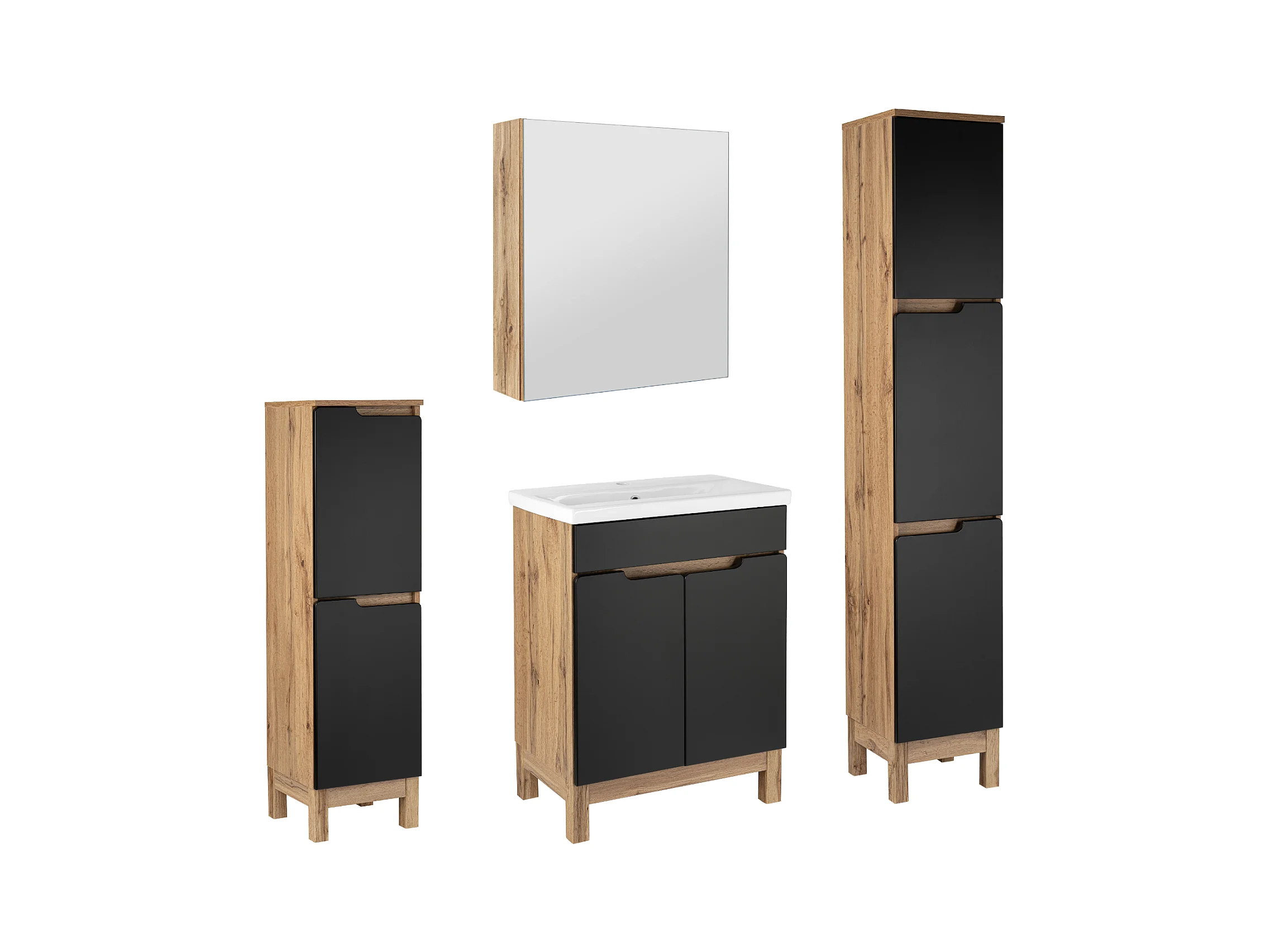 Ensemble de salle de bain 60 cm Alma Colonne Chêne Wotan / Noir mat