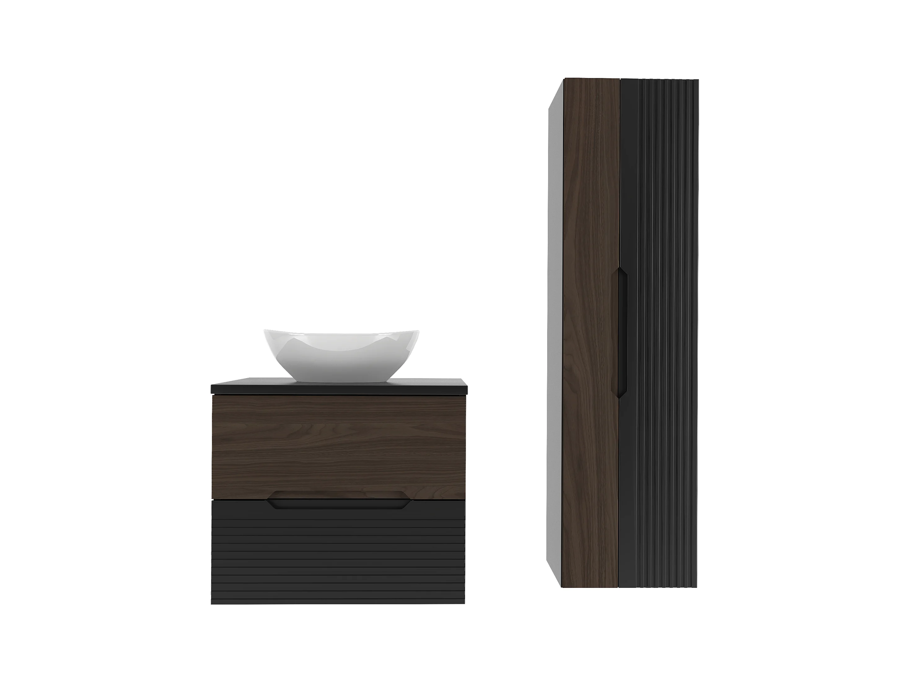 Ensemble de salle de bain 60 cm Meuble avec lavabo Colonne Noir mat / Noyer Avella