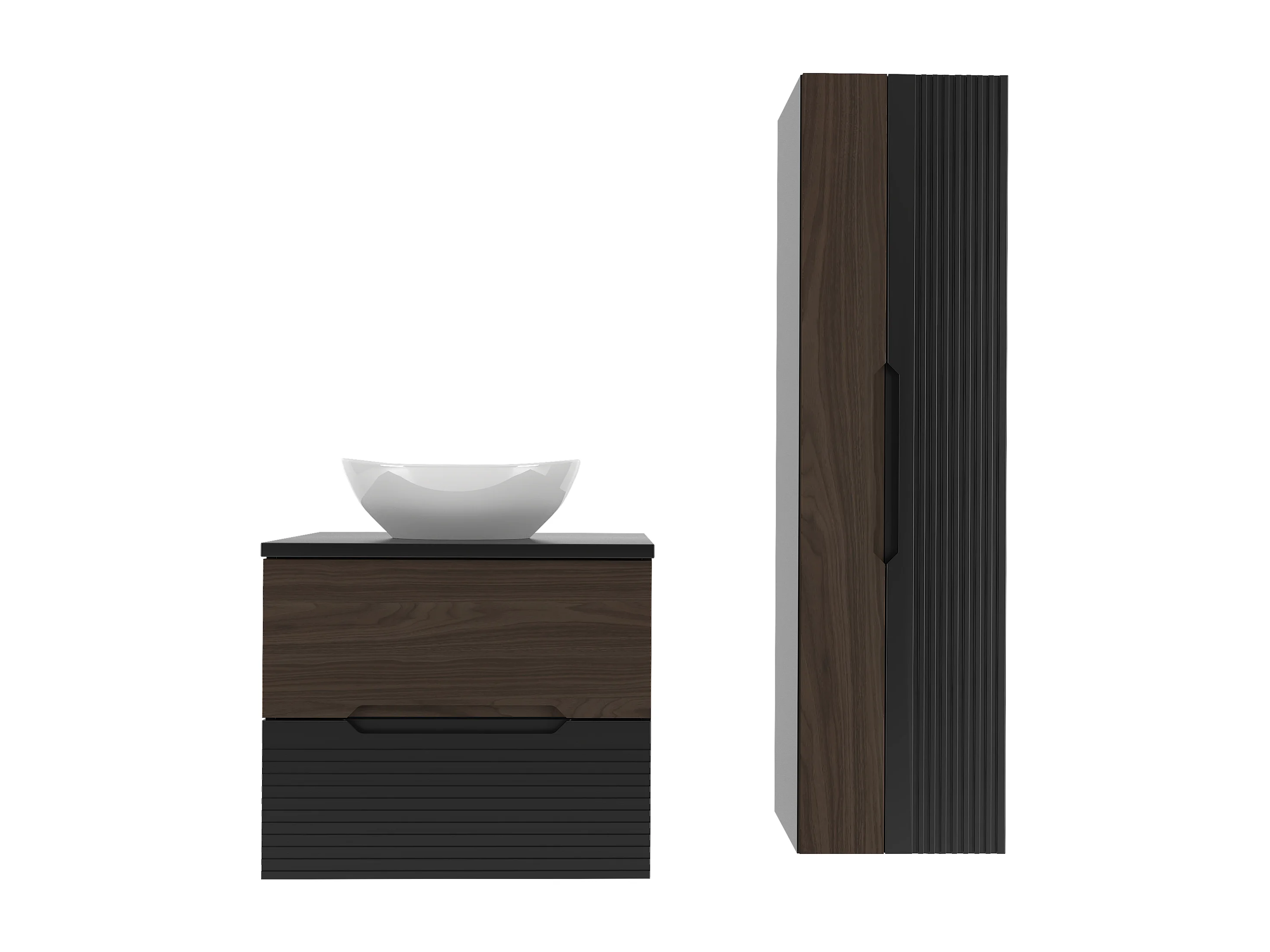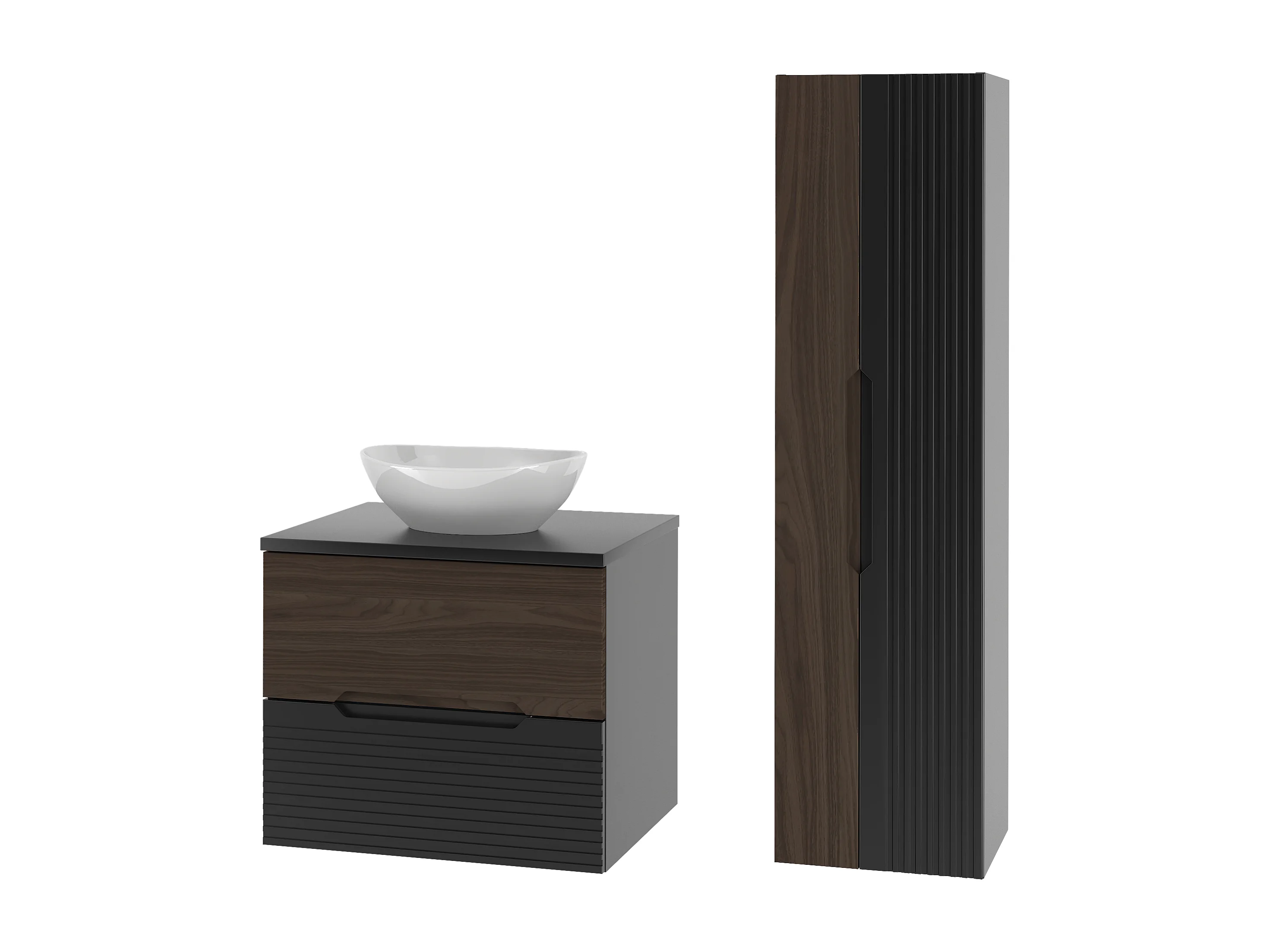 Ensemble de salle de bain 60 cm Armoire avec plan de travail Lavabo Colonne Noir mat / Noyer Avella