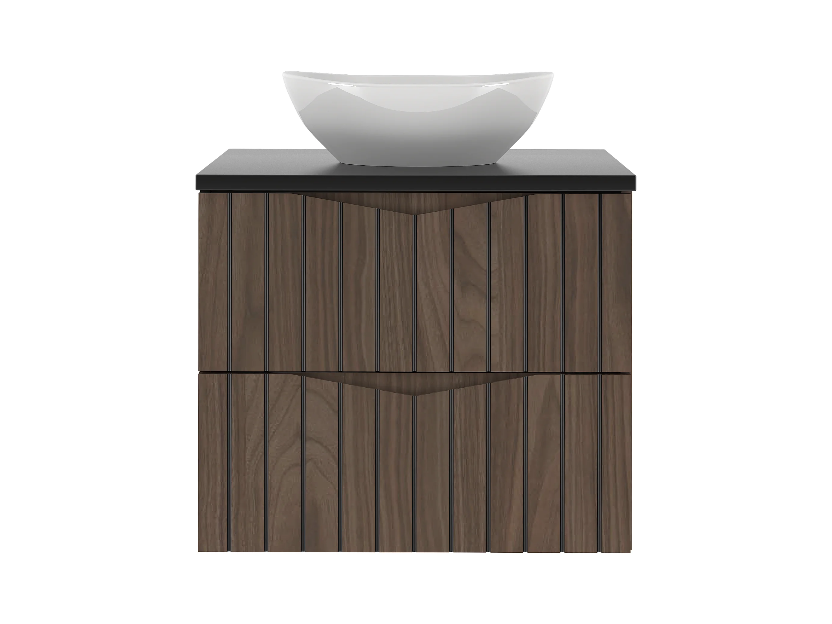 Ensemble de salle de bain 60 cm Armoire avec plan de travail Lavabo Façades rainurées Chêne Noyer Stella