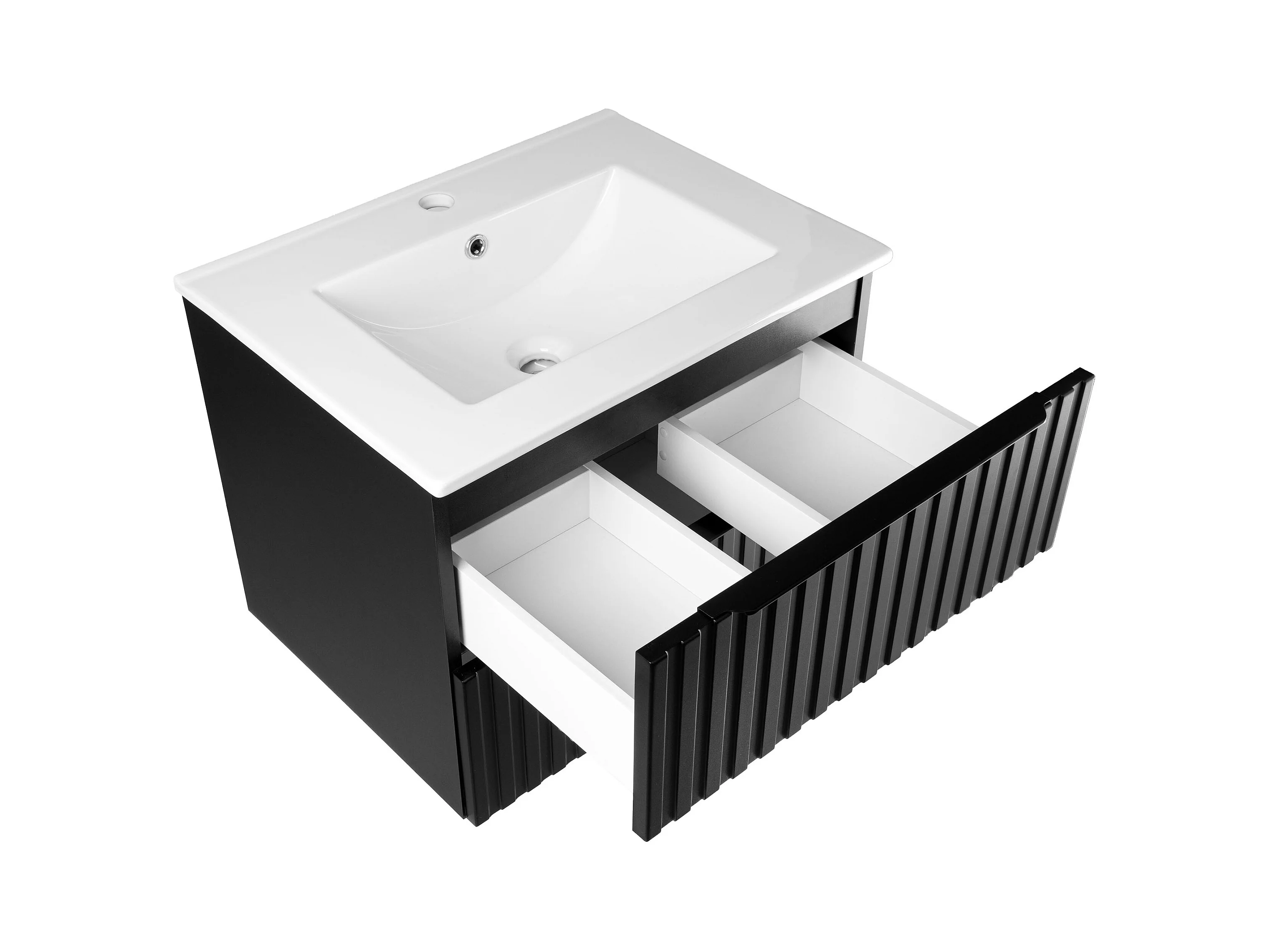 Ensemble de salle de bain 60 cm Façades rainurées Noir Amy Colonne