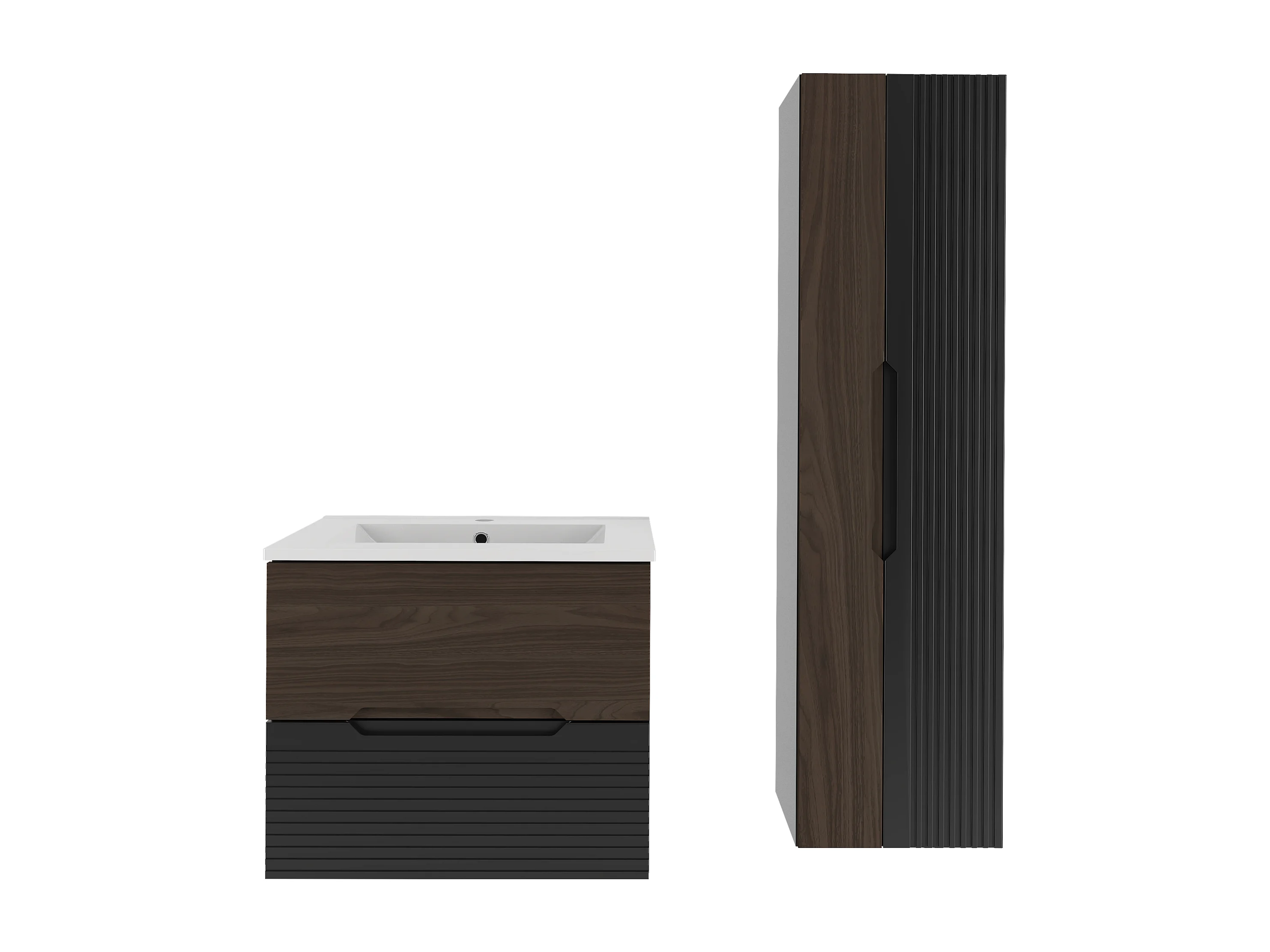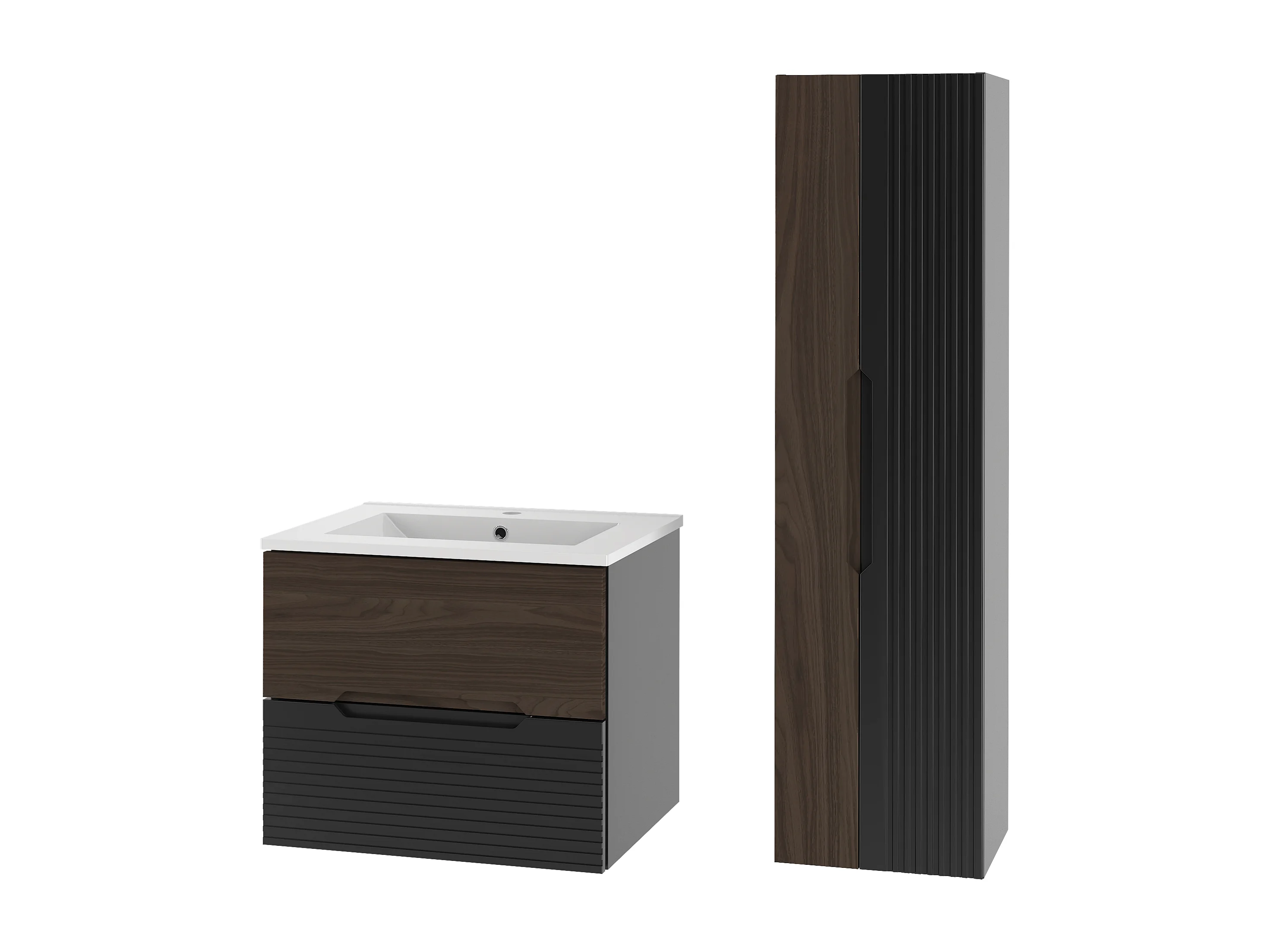 Ensemble de salle de bain 60 cm Meuble avec lavabo Colonne Noir mat / Noyer Avella