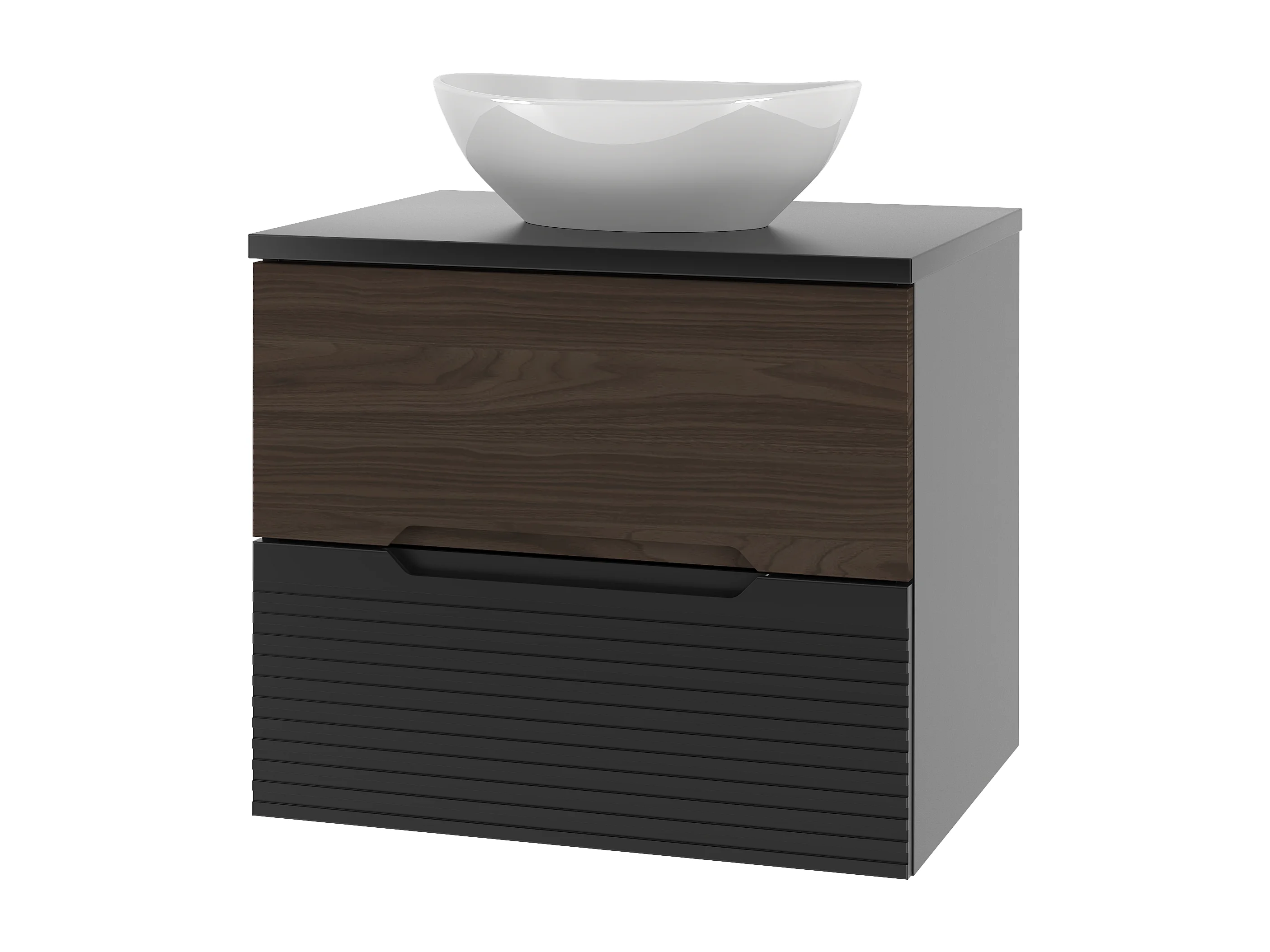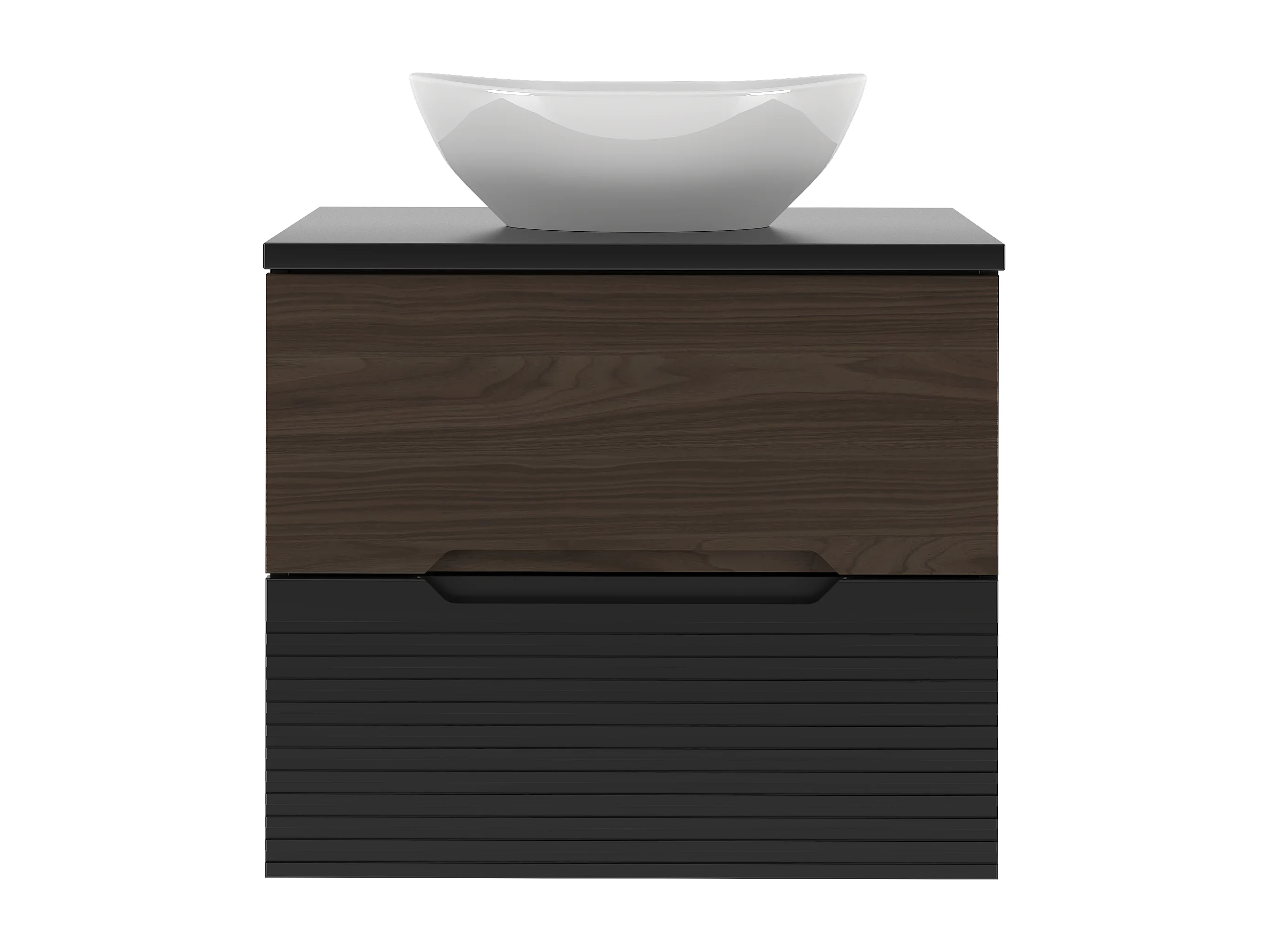 Ensemble de salle de bain 60 cm Meuble avec plan de travail Lavabo Noir mat / Noyer Avella