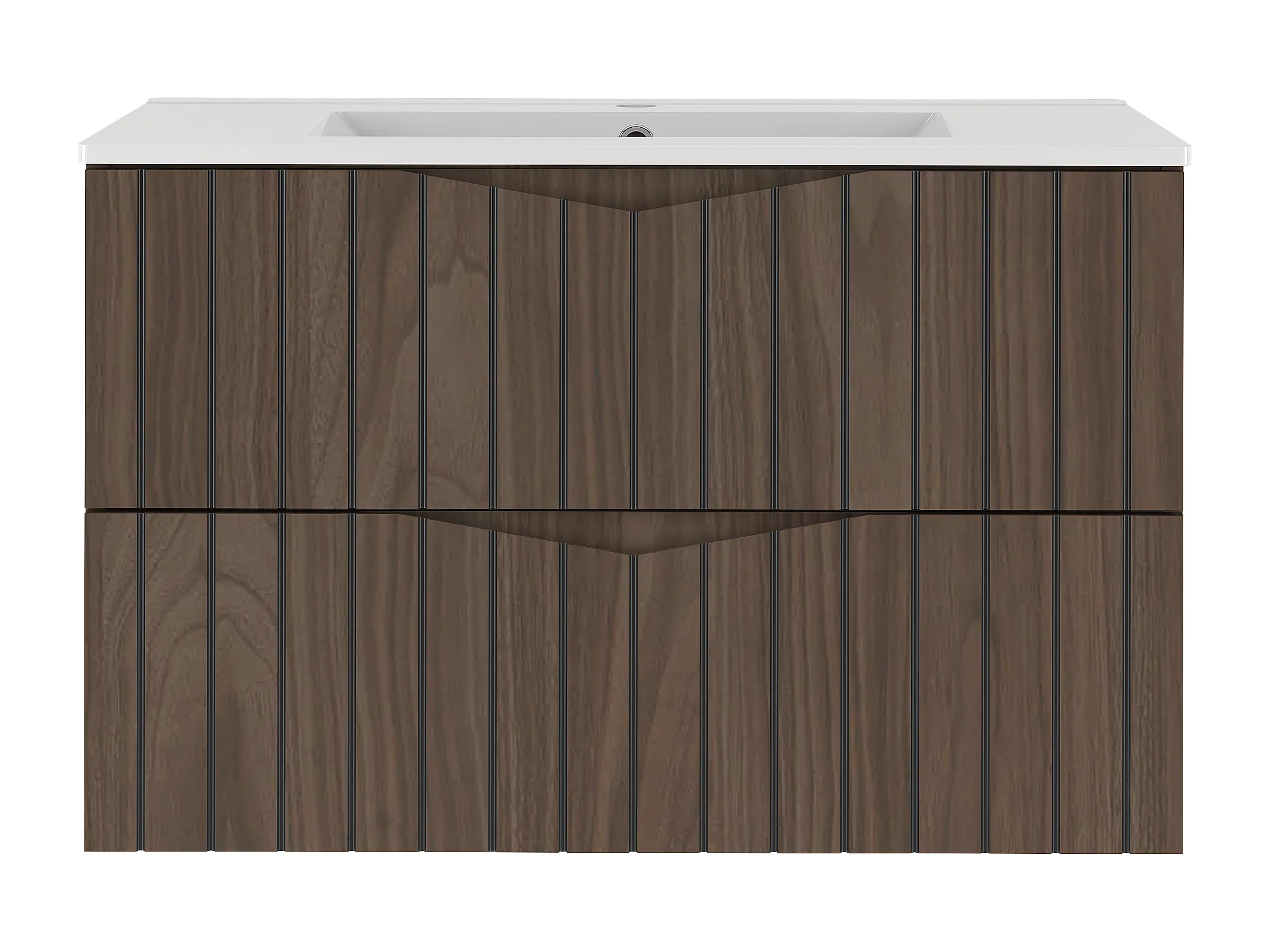 Ensemble de salle de bain 80 cm Armoire avec lavabo Façades rainurées Chêne Noyer Stella