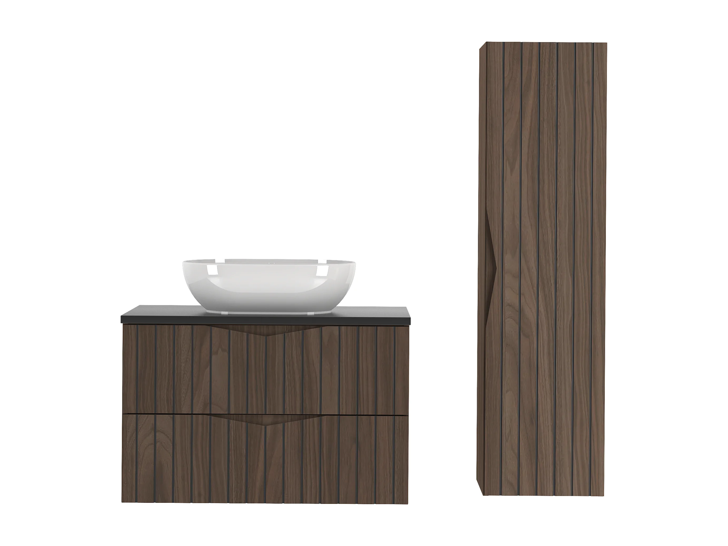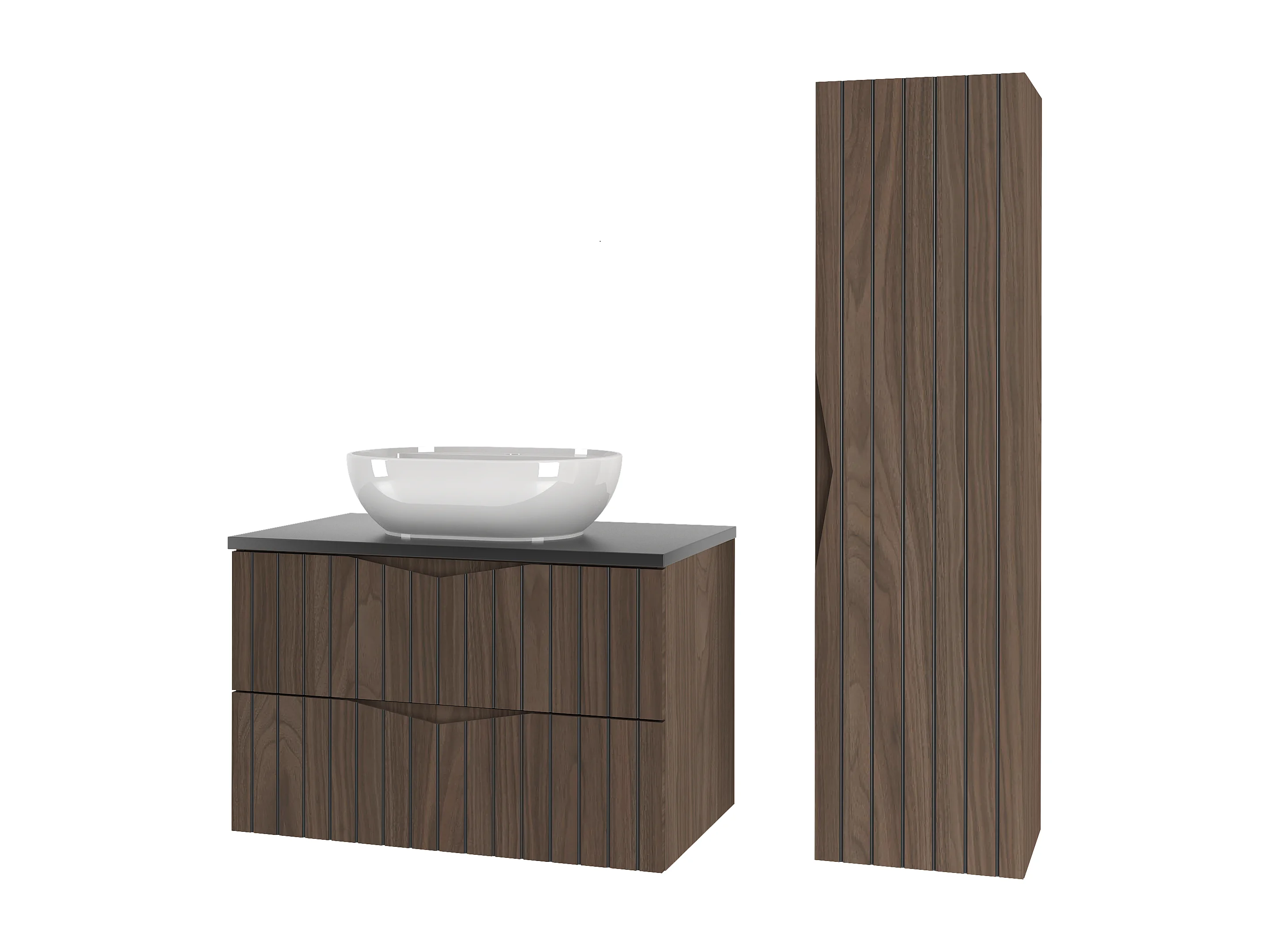 Ensemble de salle de bain 80 cm Armoire avec plan de travail Lavabo Colonne Façades rainurées Chêne Noyer Stella