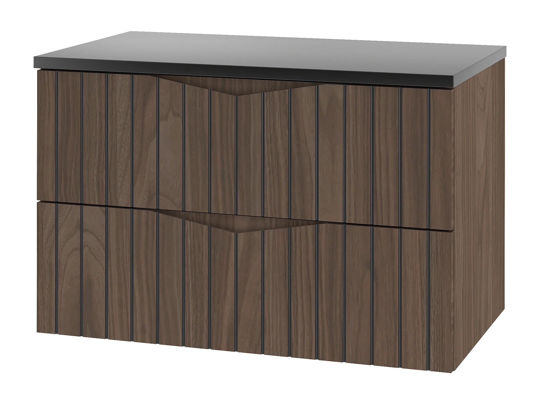 Ensemble de salle de bain 80 cm Armoire avec plateau Façades rainurées Chêne Noyer Stella