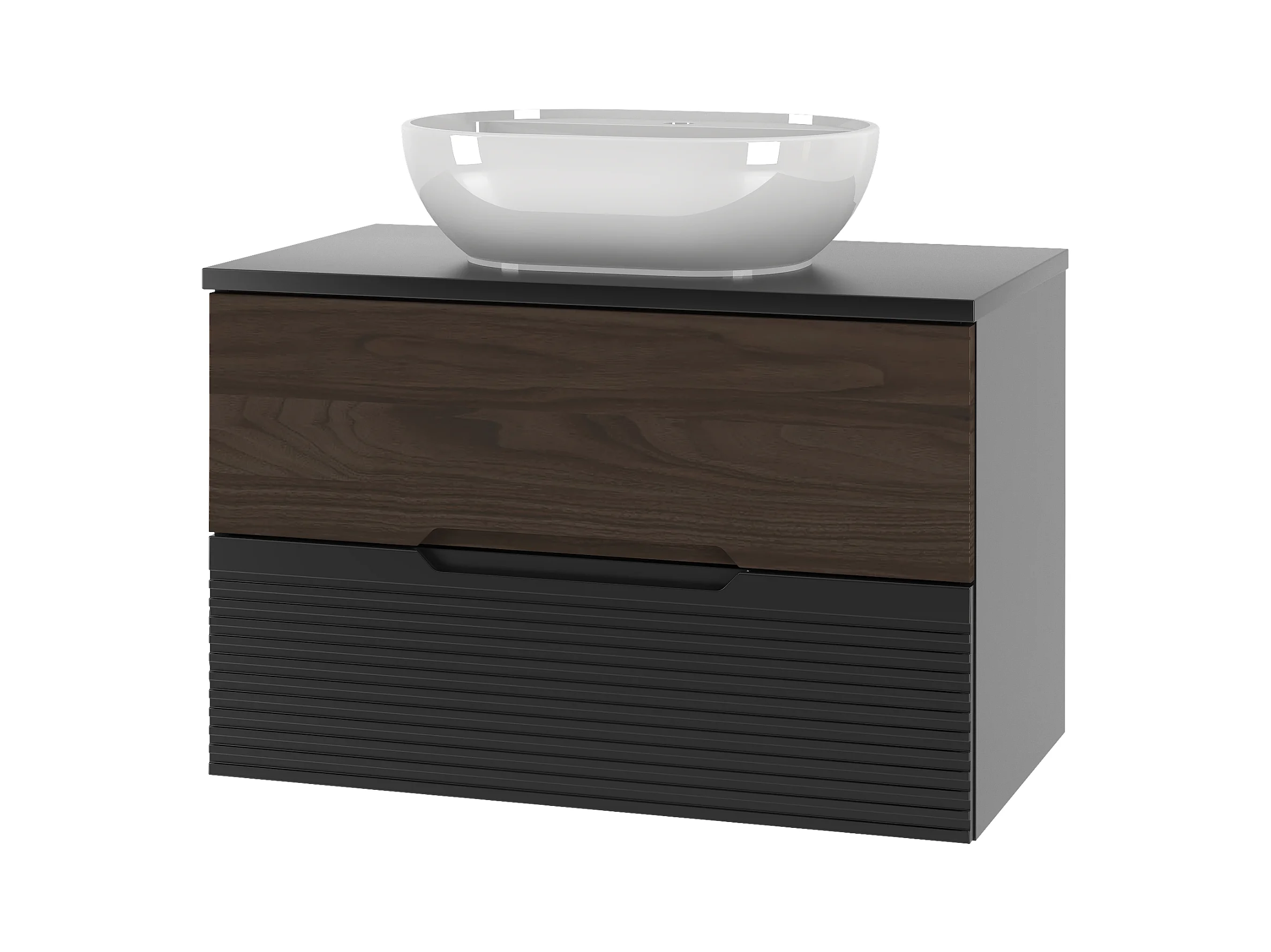 Ensemble de salle de bain 80 cm Armoire avec plan de travail Lavabo Façades rainurées Chêne Noyer Stella