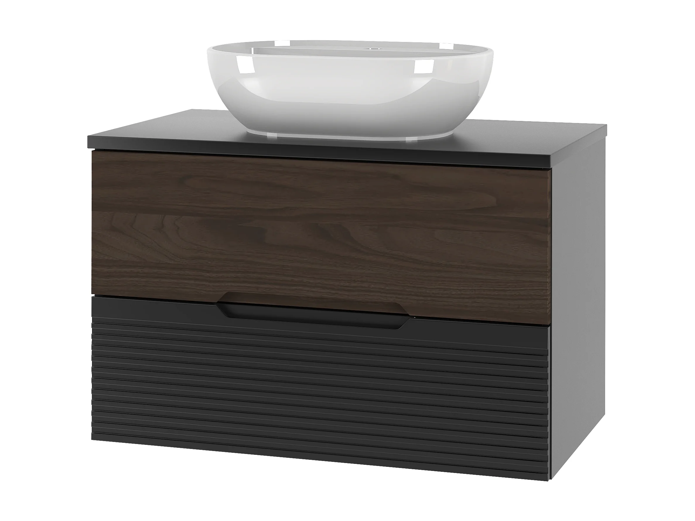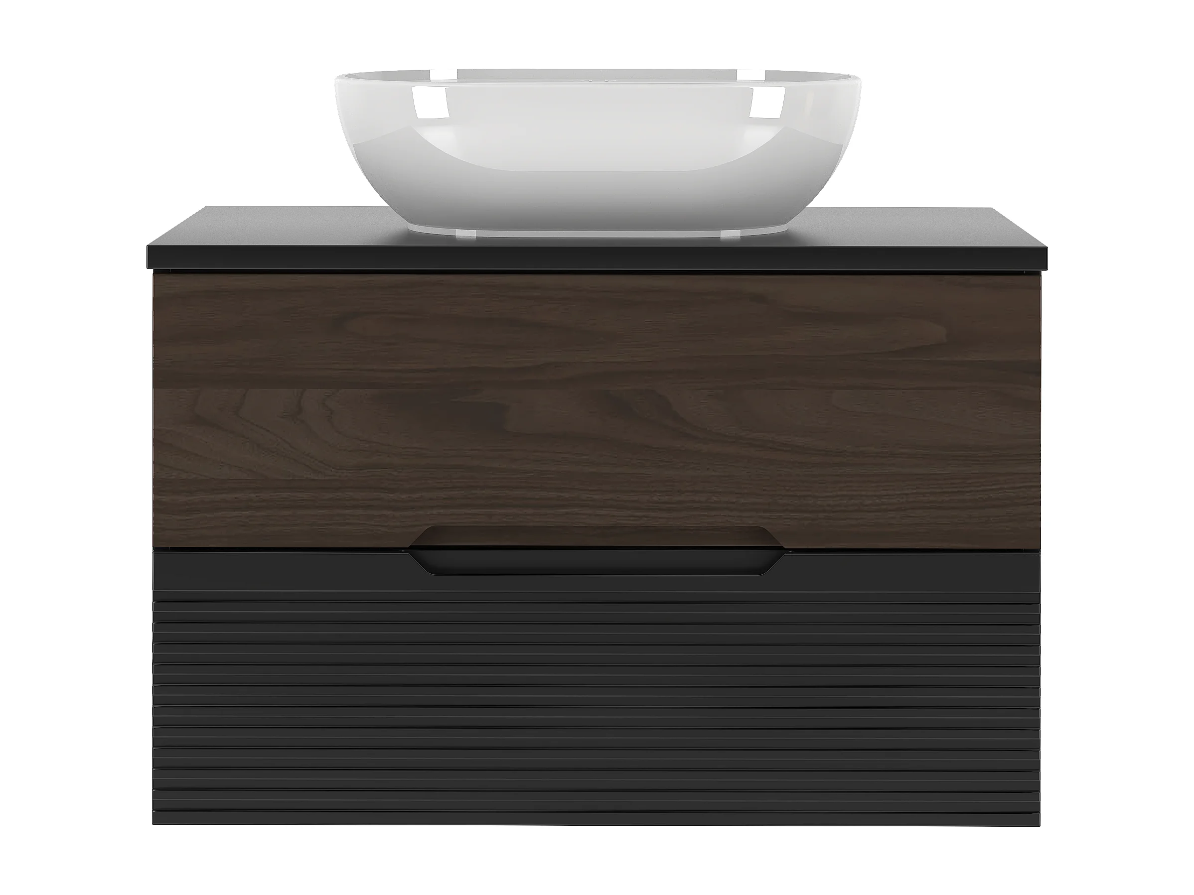 Ensemble de salle de bain 80 cm Meuble avec plan de travail Lavabo Noir mat / Noyer Avella