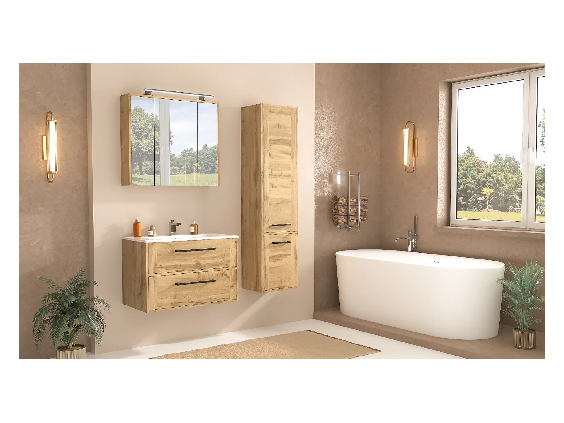 Ensemble de salle de bain 80 cm Vivien Chêne Wotan Colonne Armoire avec miroir
