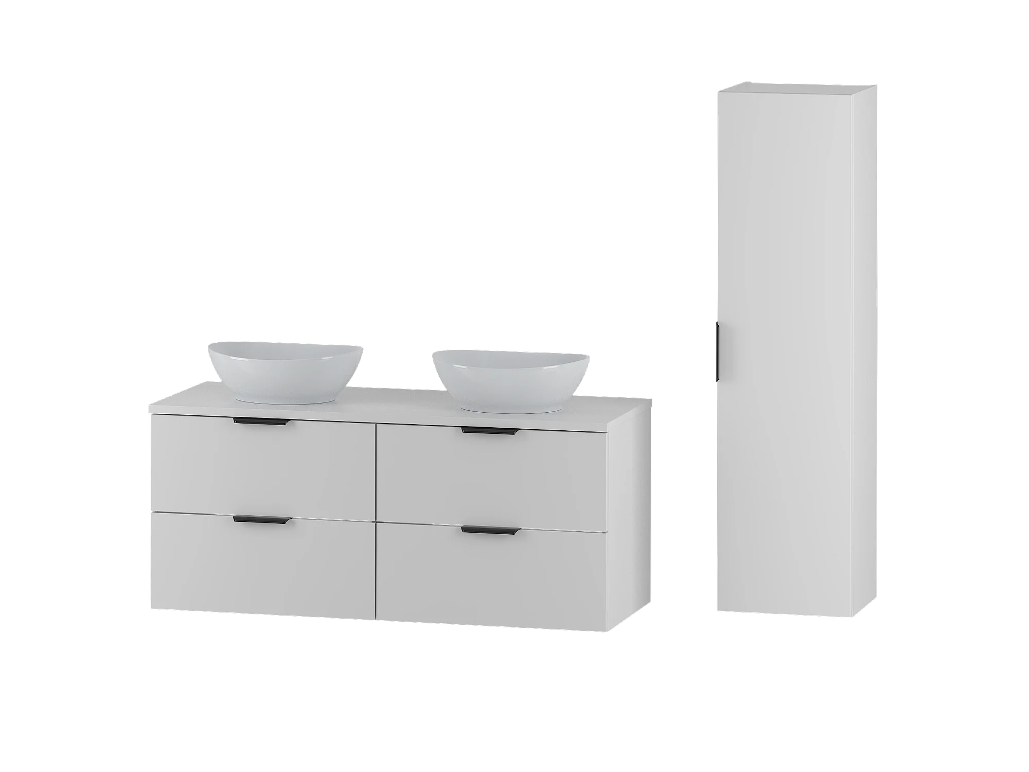 Ensemble de salle de bain blanc 120 cm Armoire Plan de travail Lavabo Colonne Pile